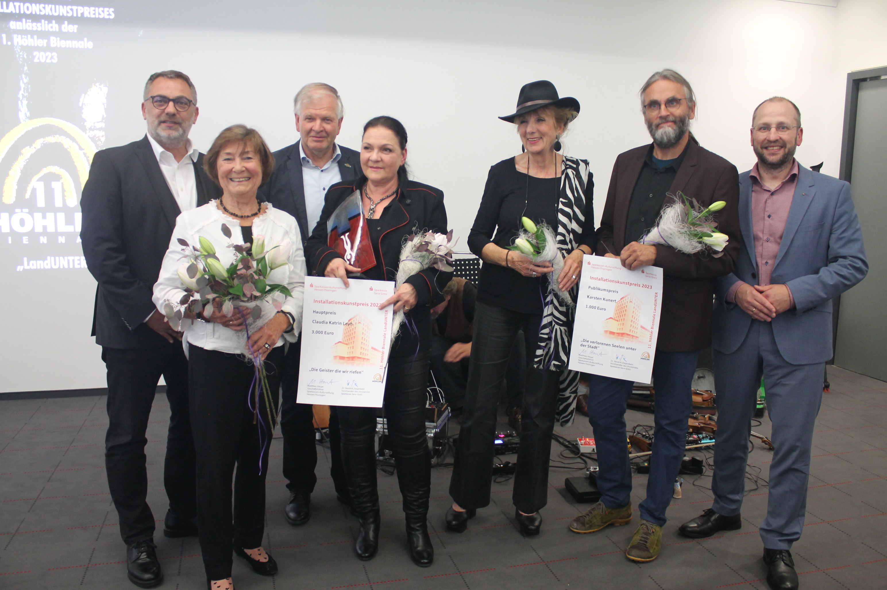 Am vergangenen Freitag fand die 11. Höhler Biennale mit der feierlichen Preisverleihung des Deutschen Installationskunstpreises ihren Abschluss. Zur Finissage der europaweit einzigartigen Kunstausstellung in der „Unterwelt“ der Stadt richtete Oberbürgermeister Julian Vonarb sich an Organisatoren, Kunstfreunde und Unterstützer: „Mein Dank gilt allen Künstlerinnen und Künstlern und dem Organisationsteam rund um Dr. Gitta Heil sowie dem Verein zur Erhaltung der Höhler, die in ungezählten Stunden und ehrenamtlicher Arbeit das Kunstereignis vorbereitet und möglich gemacht haben. Die mehr als 4600 Besucherinnen und Besucher, die in diesem Jahr aus den verschiedensten Ländern zur Ausstellung nach Gera gekommen sind, zeugen vom hohen Stellenwert des einmaligen Kunstprojekts, das seit mittlerweile so vielen Jahren fest zur kulturellen Veranstaltungslandschaft unserer Stadt gehört.“