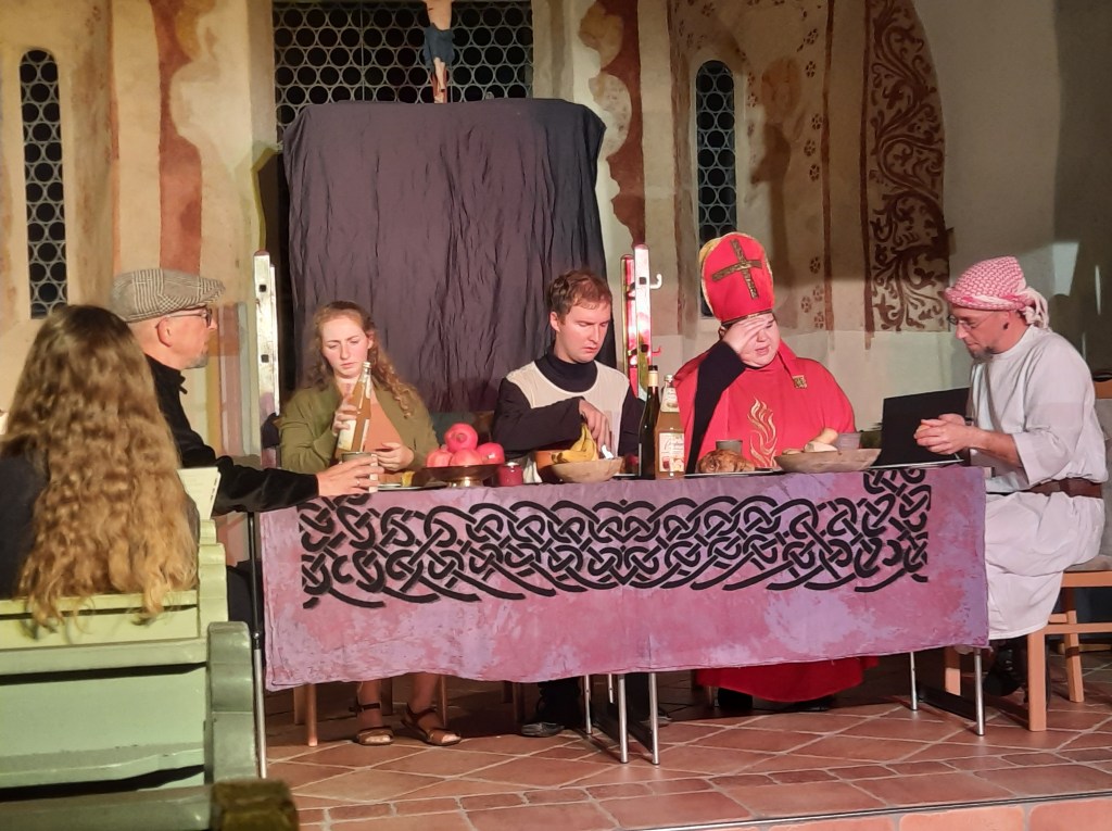 „Ein Stück aktueller denn je. Eigentlich folgt normalerweise am Ende das Klatschen. Aber aufgrund der gegenwärtig geschuldeten Situation bleibt es aus. Wer in der Liebe lebt, lebt in Gott und Gott in ihm. Da wo Liebe ist, hat das Böse und der Krieg keine Macht“, so Pfarrer Gunnar Peukert. Sein Dank galt allen sieben überzeugenden Akteuren der Spielgemeinde für diese bewegende, nachdenkenswerte Aufführung zu einem brisanten Thema, das Toleranz, Miteinander und Humanität fordert.