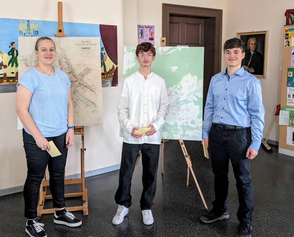 Das Interesse am Handwerk wurde den drei Protagonisten scheinbar in die Wiege gelegt. Stellas Eltern betreiben in Greiz eine Schuhmacherwerkstatt in dritter Generation, Tonys Eltern sind Frisöse und Metallweber und Majds Vater ist Bauingenieur. „Wir sind sehr an der Historie unserer Region interessiert“, sagt Tony. Mit der Recherche zu ihrer Projektarbeit begannen die drei am 25. Mai vorigen Jahres im Landesarchiv Thüringen, Staatsarchiv Greiz. „Hier hat uns von Anfang an vor allem Frau Ernst sehr unterstützt. Sie stellte uns auch den Stadtplan aus dem Jahre 1889 zur Verfügung, der jetzt neben dem aktuellen Stadtplan im Schaufenster des Geschäfts meiner Eltern zu sehen sind“, berichtet Stella. Große Unterstützung bei ihren Recherchen erhielten die drei Schüler auch durch André Kühne von der Handwerkskammer Ostthüringen.
