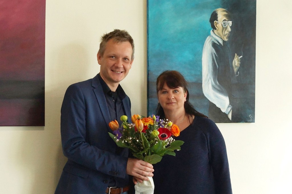 Dass eine Künstlerin aus Leipzig im Greizer Krankenhaus ausstellt, ist schon etwas ungewöhnlich. „Der Kontakt mit der Klinikleitung kam durch Frau Seifert zustande“, sagt Cordula Stachel. Die Kunsterzieherin Heike Seifert war voriges Jahr maßgeblich an der Realisierung der Ausstellung „In Bewegung bleiben – wir machen Druck!“ des Ulf-Merbold-Gymnasiums im Kreiskrankenhaus Greiz beteiligt. „Ihre Tochter und mein Sohn sind eng befreundet“, verrät Cordula Stachel. In gemeinsamen Gesprächen entstand die Idee, dass die Leipziger Künstlerin ihre Werke in der Greizer Krankenhaus-Magistrale zeigen könne.