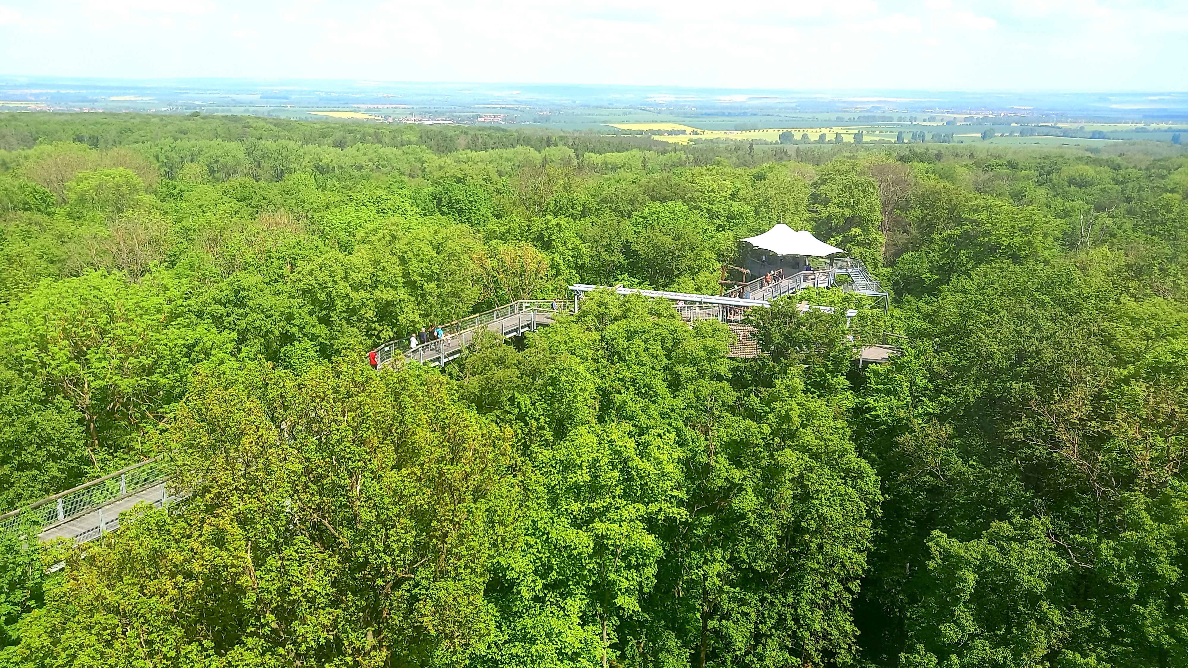 Wenn wir schon mal im Unstrut-Hainich-Kreis sind, dann gehört unbedingt auch ein Besuch des Nationalparks Hainich zum Programm. Den haben wir heute, am Tag nach Christi Himmelfahrt, absolviert. Dabei haben wir Geheimnisse des Hainich entdeckt, alte Eichen bestaunt, jede Menge Informationen in uns aufgenommen und selbstverständlich auch den Baumkronenpfad an der Thiemsburg mit dem Aussichtsturm erklommen.