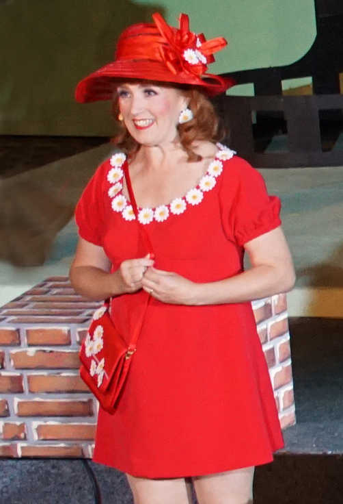 Das Theater Rudolstadt präsentiert im Open Air Sommertheater 2024 auf der Heidecksburg: „Die Olsenbande greift nach den Sternen“. Auftritt der wortgewanden Yvonne, gespielt von Ulrike Gronow. Foto: Andreas Abendroth