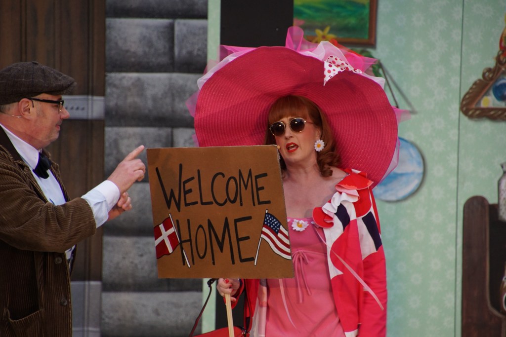 Frenetisch vom Publikum mit Applaus bedacht werden auch die Auftritte von Egon – er kommt mit einem Klapprad angeradelt – und Kjelds Ehefrau Yvonne, welche im Stück nicht nur durch ihr wandelbares, schrille Outfit immer wieder begeistert.