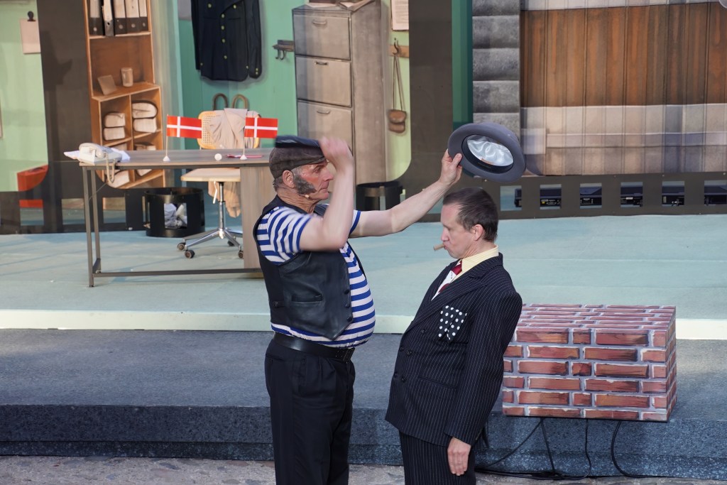 Das Theater Rudolstadt präsentiert im Open Air Sommertheater 2024 auf der Heidecksburg: „Die Olsenbande greift nach den Sternen“. Auftritt von Michael Goralczyk als Benny und Markus Seidensticker als Kjeld. Foto: Andreas Abendroth