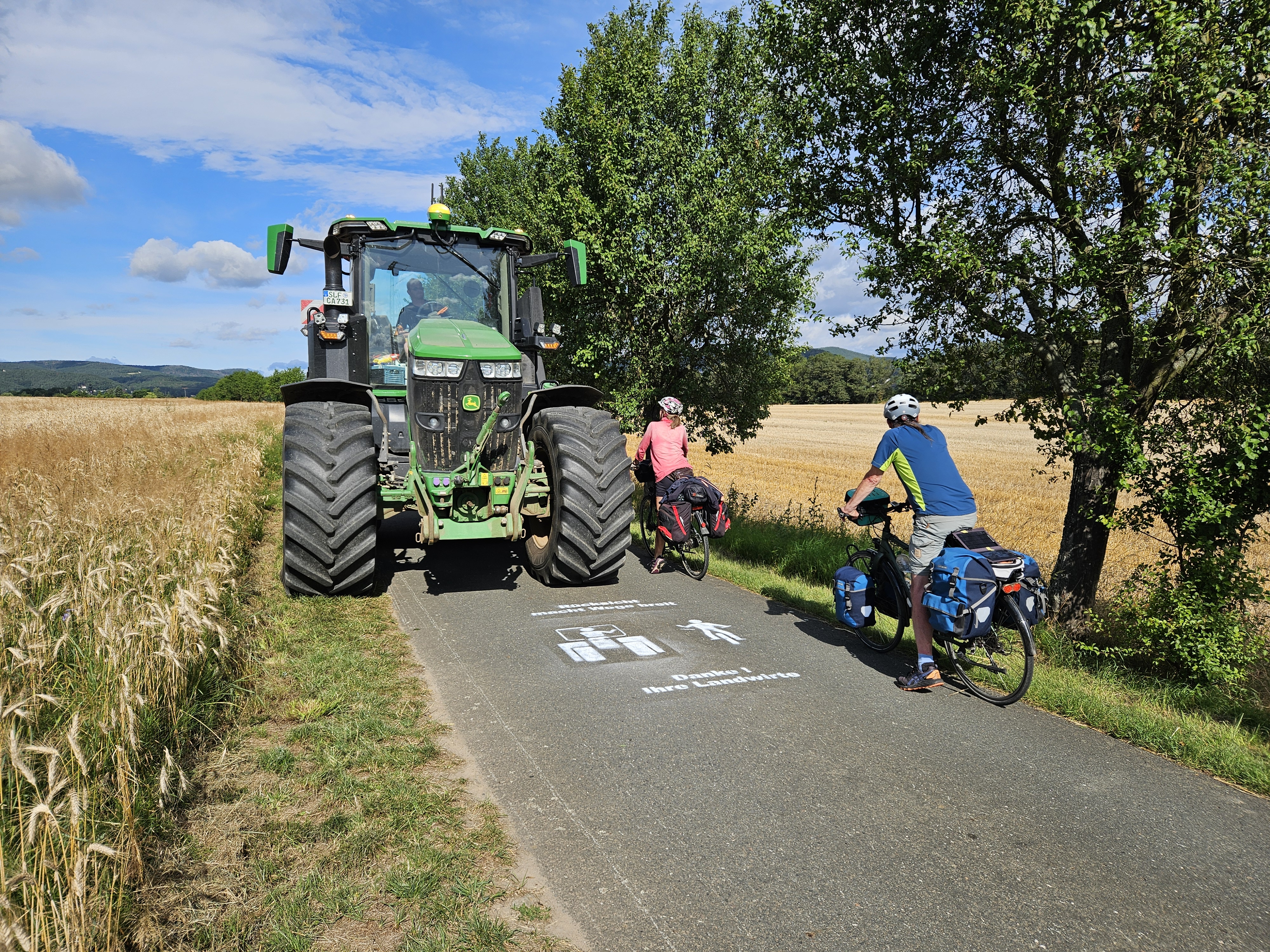 Thüringens Radrouten und Fußwege führen oft über Feld- und Wirtschaftswege, die von Landwirtinnen und Landwirten zum Erreichen ihrer Arbeitsflächen genutzt werden. An diesen Stellen ist eine gegenseitige Rücksichtnahme aller Nutzer von großer Bedeutung.