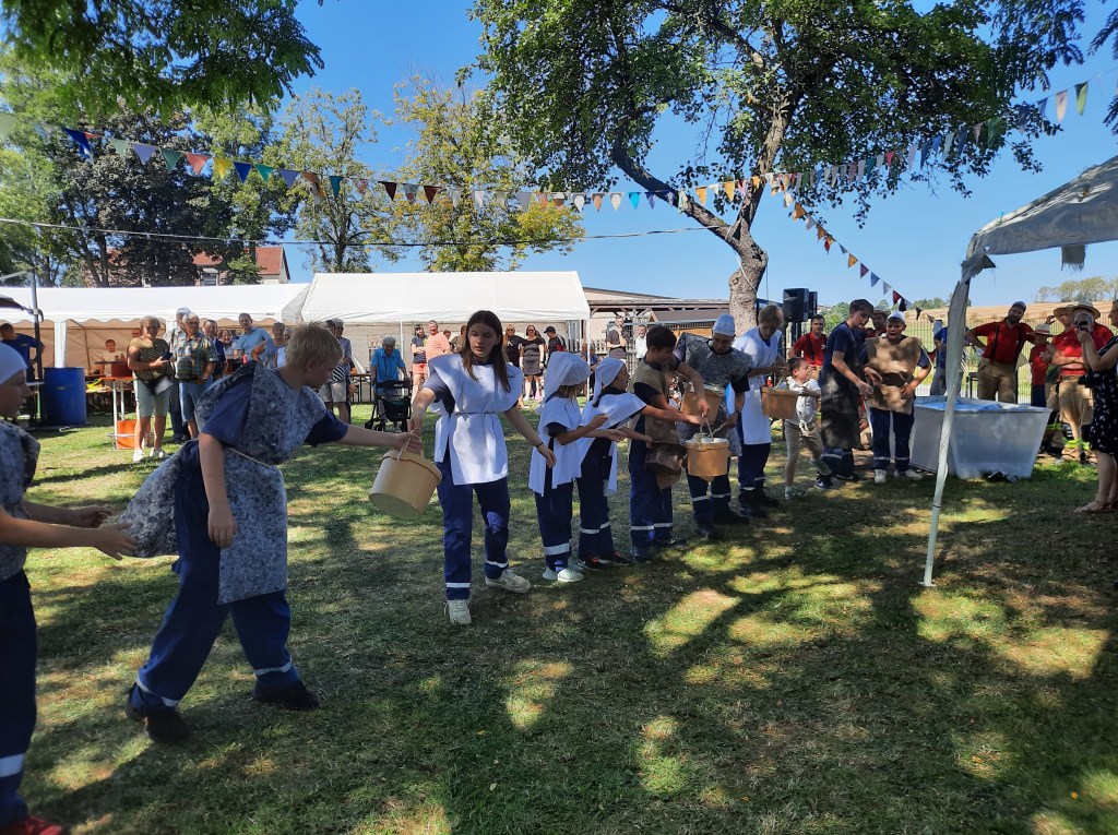 Den ersten Programmhöhepunkt präsentierten mit viel Einsatz, Spaß und Freude die Jugendfeuerwehr mit einer Zeitreise durch das Löschwesen vom ersten einfachen Löschversuch, über Nachbarn, die ein Löschgerät mitbringen mussten, über das Löschen mittels Eimerkette, Sturmfass auf Schleife, Handdruckspritze, Kübelspritze bis hin zum eigens für die Jugendfeuerwehr angefertigtem modernen Löschfahrzeug. Ein Dank und viel Applaus gab es nicht nur für die Jugendfeuerwehr um Jugendfeuerwehrwart Mike Vorwerk und Moderatorin und Ausbilderin Romy Anschütz, sondern auch der Interessengemeinschaft Feuerwehrhistorik Langenwolschendorf für die Bereitstellung der historischen Gerätschaften.