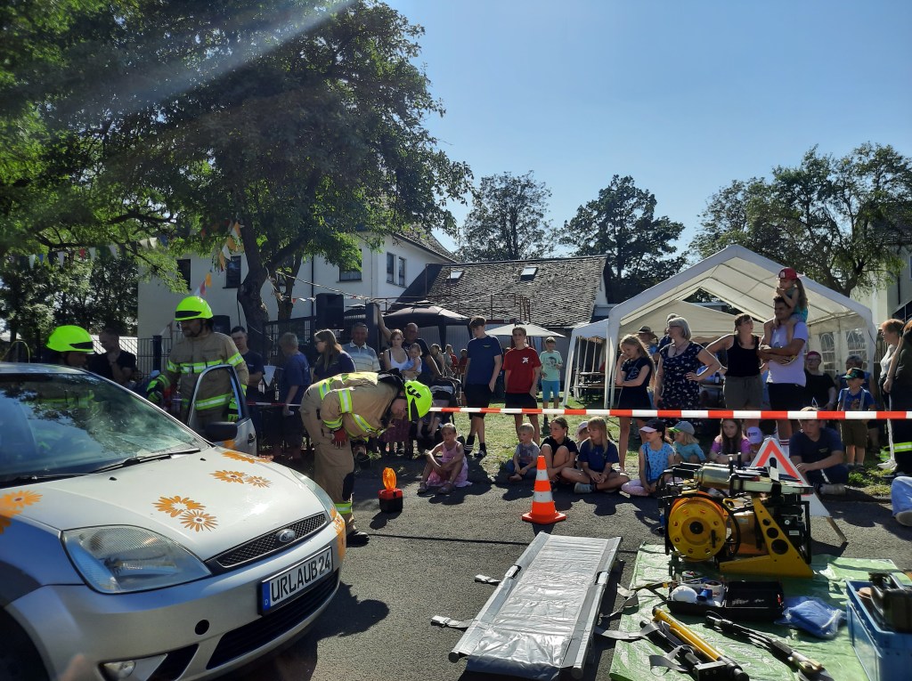 Foto 5: Wie ist die richtige Vorgehensweise der Feuerwehrleute beim Einsatz an einer Unfallstelle? Hier die eindrucksvolle Präsentation durch die Arnsgrüner Kameraden.