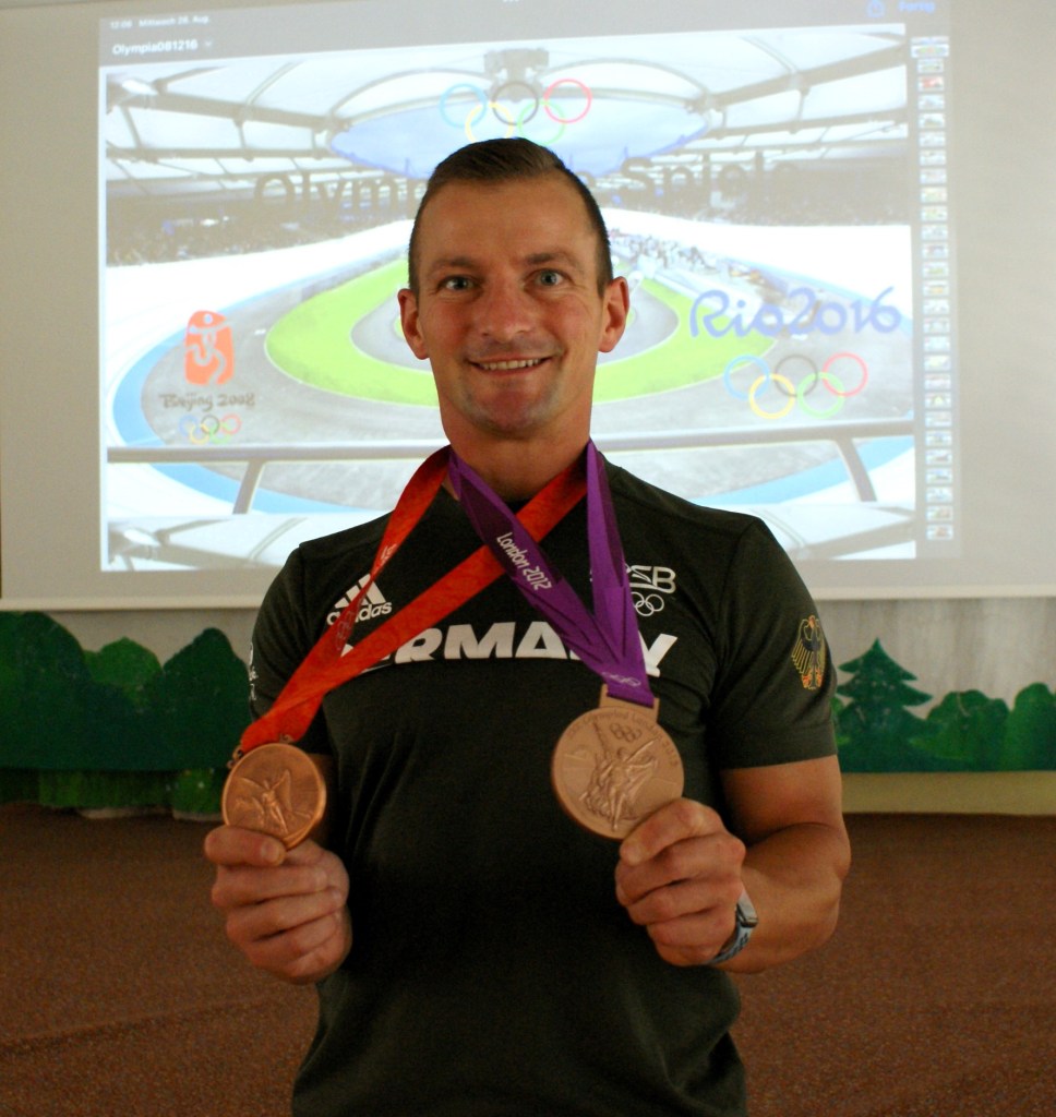 „Die Schule hatte sich mit einer tollen Geschichte für die Startplätze beworben“, verriet der ehemalige Bahnradsportler zur Übergabe. Er findet es eigentlich schade, dass der Sport nicht mehr den Stellenwert wie früher habe. „Um so mehr freuen wir uns, dass wir den Kindern und Jugendlichen mit dem SchülerCross ein cooles Event bieten können, bei dem sie erfahren, wieviel Spaß und Freude aktive Bewegung in de Natur macht“, so Enders, der seine Olympischen Medaillen von Peking und London nach Triebes mitgebracht hatte und den Schülern über seinen Werdegang als Sporler berichtete.