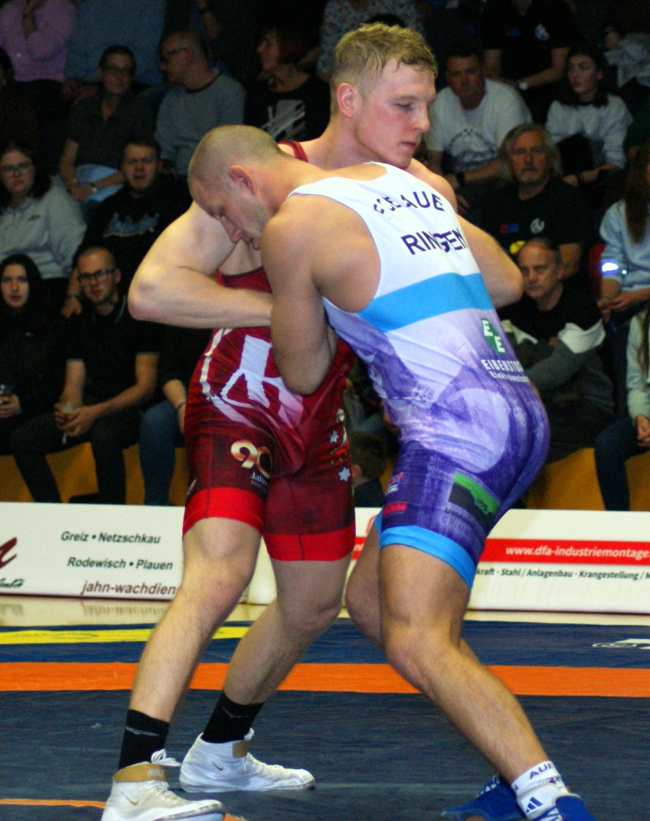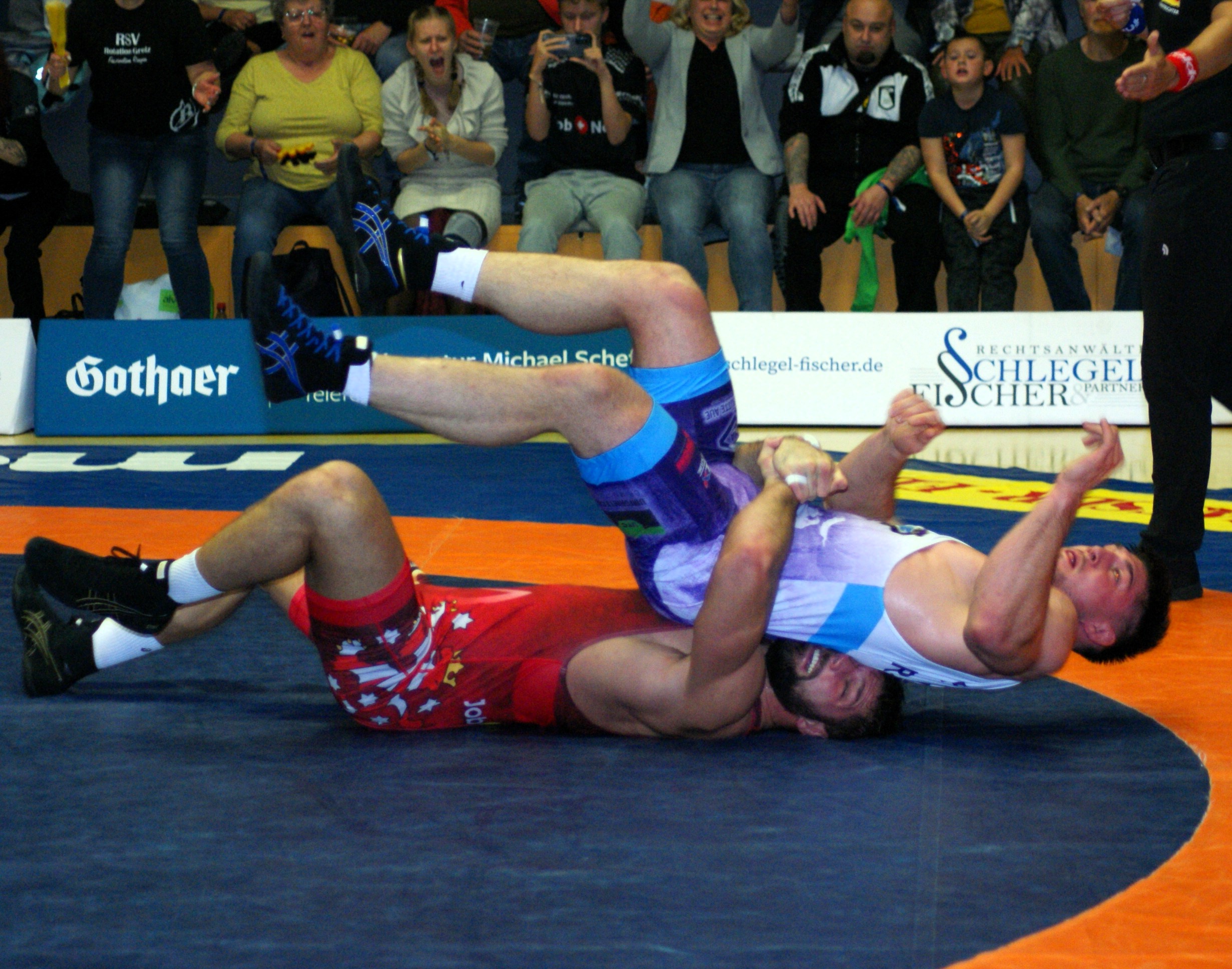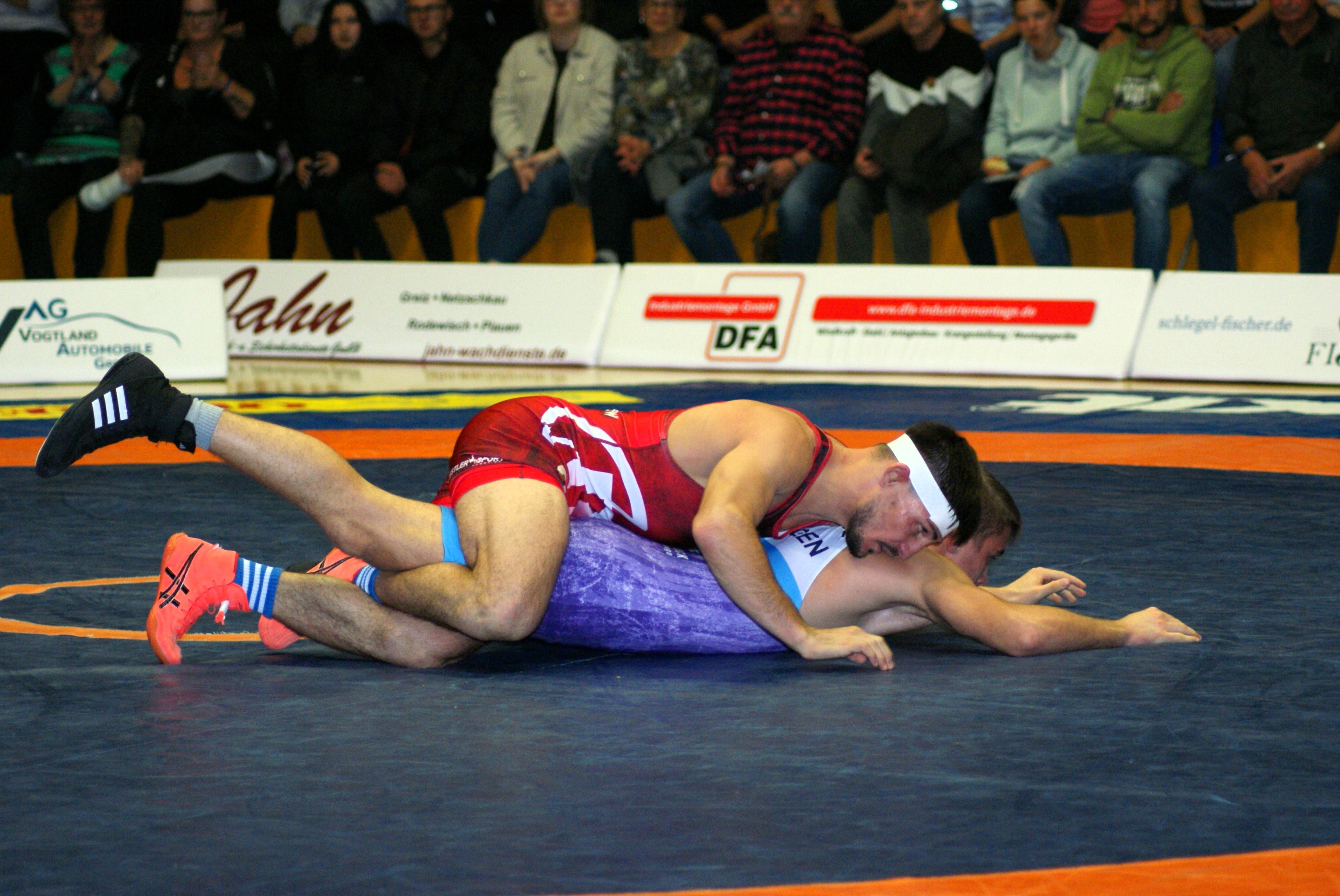 Das Ost-Derby bescherte den 837 zahlenden Zuschauern – darunter auch etliche Schlachtenbummler aus dem Erzgebirge – in der Greizer Ringerhalle an der Eisbahn zehn zum Teil spannende und hochklassige Kämpfe. Am Ende setzten sich die Gastgeber mit 22:11 gegen die Gäste aus Aue durch. Sieben Kämpfe konnten die Schützlinge von Trainer Tino Hempel für sich entscheiden, davon drei kurzrundig, während die Auer drei Begegnungen siegreich gestalten konnten. Damit gewinnt der RSV Greiz den fünften Kampf in Folge und liegt ungeschlagen auf Platz eins der Tabelle.
