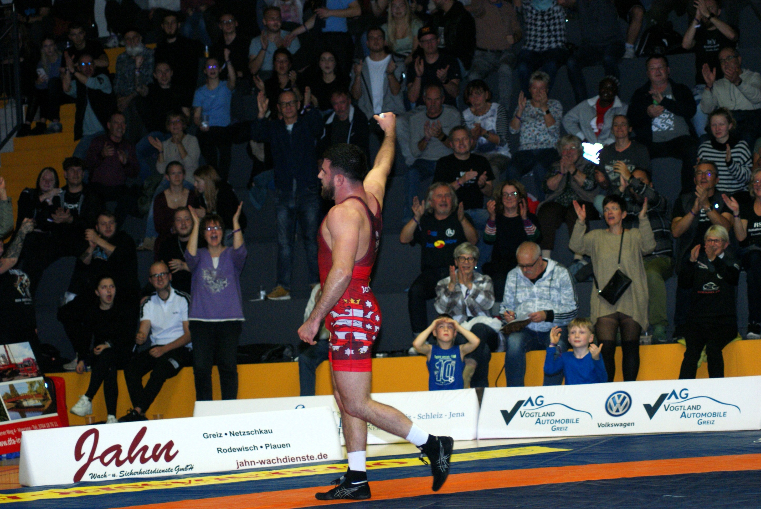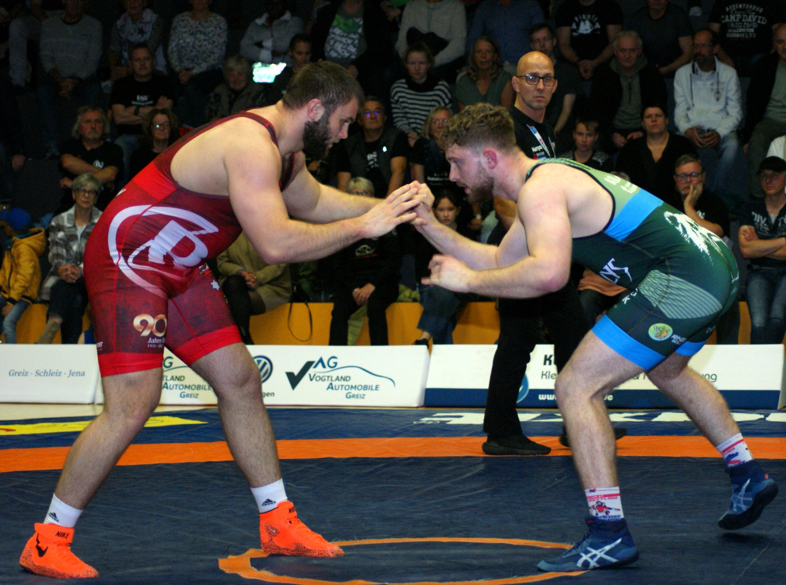 Höhepunkt aus Greizer Sicht war der Sieg in der 71-Kilo-Greko-Klasse von Christian Fetzer durch Technische Überlegenheit gegen den jungen Ole Hansen. Der 40-jährige Mannschaftskapitän des RSV punktete sich unter anderem mit zwei spektakulären Vier-Punkte-Würfen nach 3:28-Minuten zum kurzrundigen 15:0-Sieg gegen den 18-Jährigen.