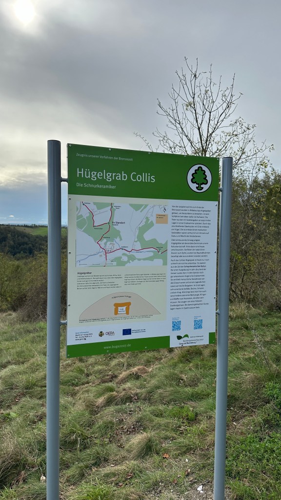 Die Entdeckungen des Geraers Gustav Korn, der 1875 das Colliser Grabhügel ausgrub, werden auf der neuen Tafelausstellung gewürdigt. Neben den Überresten von drei Erwachsenen und einem Kind fanden sich auch zahlreiche Grabbeigaben. Heute sind einige dieser Funde im Stadtmuseum Gera zu besichtigen und wurden auf der neuen Tafel mit QR-Codes verlinkt, die den Besuchern den Zugang zu weiteren Informationen ermöglichen.