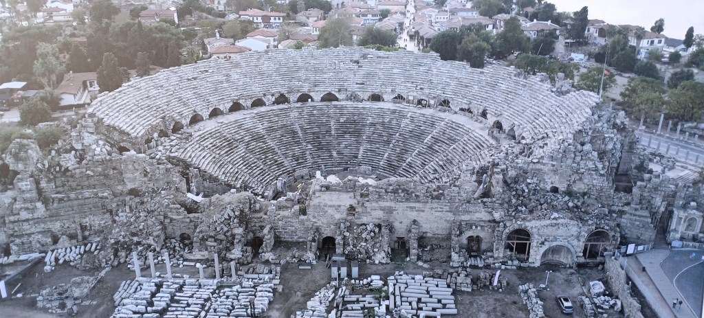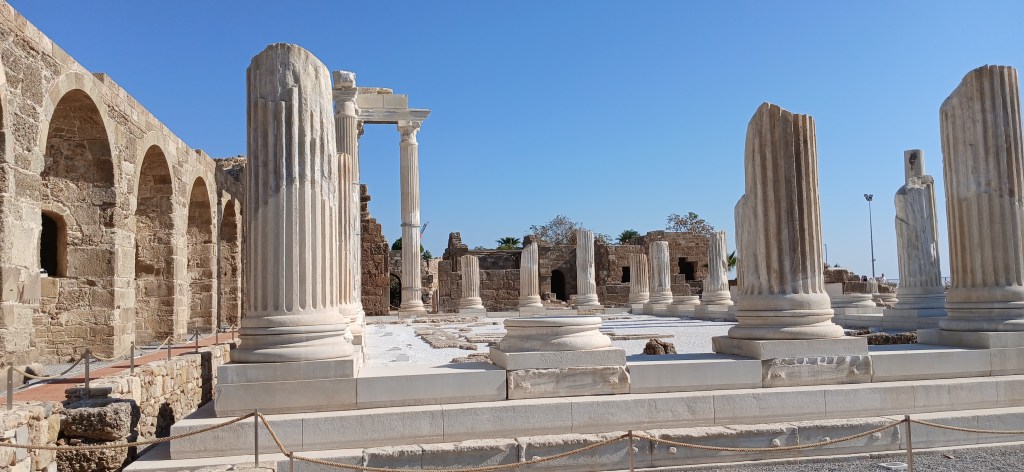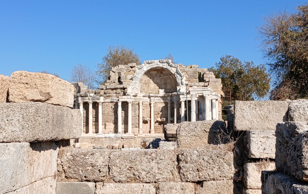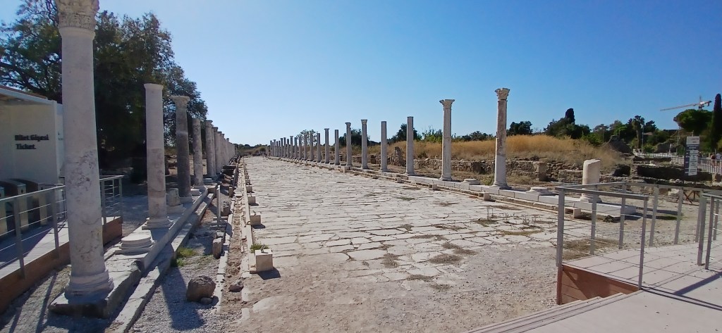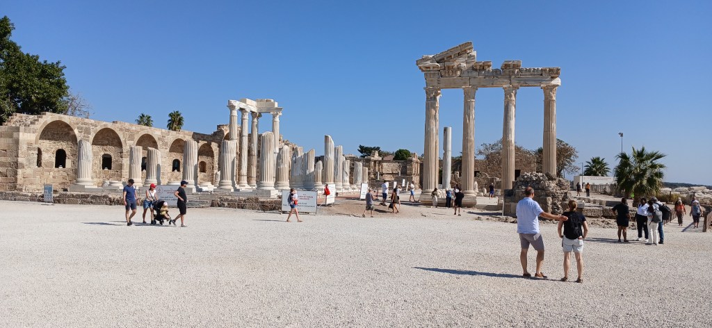 Natürlich haben wir in Side nicht nur „geurlaubt“, wir waren auch auf antiken Pfaden unterwegs. Und das hat sich gelohnt, denn das historische Side hat sich seit seinen Tagen als Zufluchtsort für das legendäre Liebespaar Antonius und Kleopatra kaum kaum verändert. Naja, abgesehen vom regen Händlertreiben in modernen Souveniershops, einladenden Restaurants und dem großen Atatürk-Denkmal am Hafen. Aber für Fans der griechisch-römischen Historie gibt es jeden Menge authentische Bauwerke aus jener Zeit wie den Apollon-Tempel am Meer und das römische Theater.