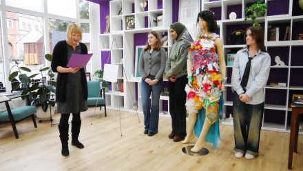 Mit ihrem Kunstwerk möchten die Preisträgerinnen die Menschen anregen, über ihren Umgang mit Plastik im Alltag nachzudenken: eine Schaufensterpuppe in modischer Kleidung – aus Plastikmüll. Auf ihren Armen prangt der Titel des Kunstwerks, der einem „Die Ärzte“-Song entlehnt ist. Er schreit dem Betrachtenden entgegen: „Es wäre nur deine Schuld, wenn es so bleibt“. „Auf den ersten Blick wird die Masse an Plastik den Betrachter überrollen, auf die vielen weiteren Blicke werden die Gedanken und vielleicht die Schuldgefühle anfangen nach Lösungen zu suchen“, sagen Siba Al Hamoud, Annie Kälber und Emma Richter über ihr Kunstwerk.