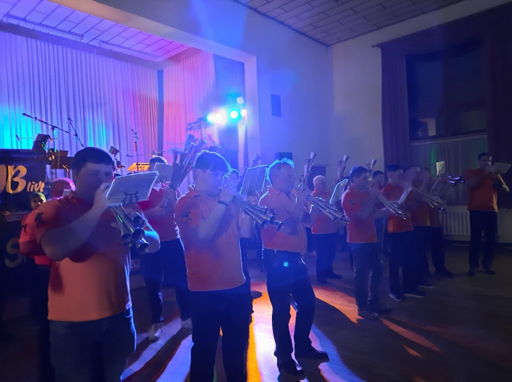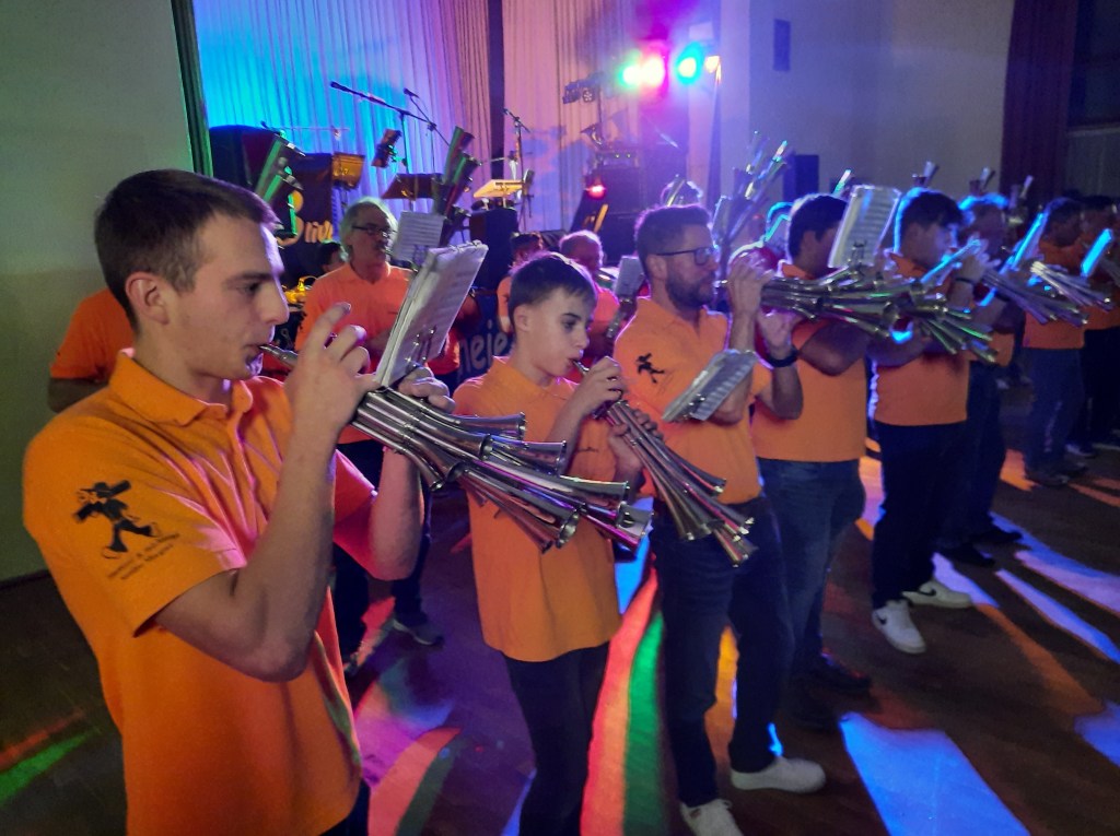 Auch an den Trommeln und Becken waren junge Spieler vertreten. „Wir sind stolz auf unseren Nachwuchs. Wer Interesse für unsere Schalmeienmusik hat, ist bei uns genau richtig und jederzeit herzlich willkommen“, ruft der musikalische Leiter und durch das Programm führende Matthias Dübler auf.