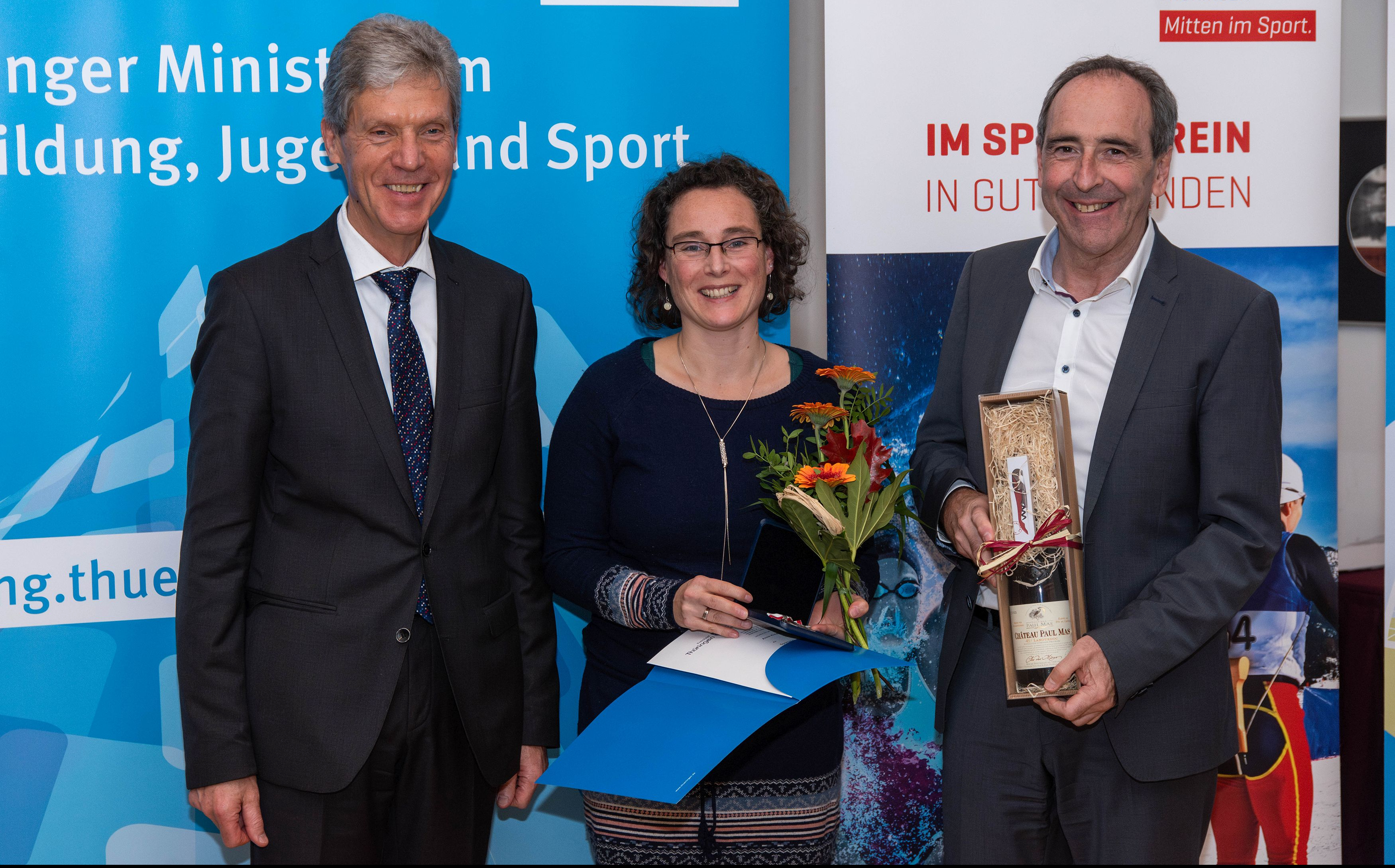 Anne Kindler wurde von Bildungsminister Helmut Holter mit der Sportplakette des Landes Thüringen ausgezeichnet, eine der höchsten Ehrungen im Thüringer Sport.
