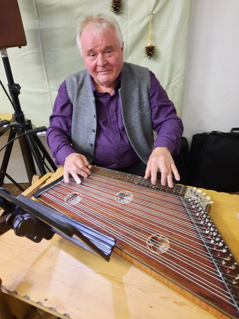 Der Schönbacher kam mit einer seiner Zithern, legte sie flach auf den Tisch und begann durch Zupfen der Saiten zu spielen. „Das ist echte Handarbeit. Von alleine geht da nichts“, so Ott, der wegen der guten Akustik vor allem gerne mit der Zither in der Kirche spielt.