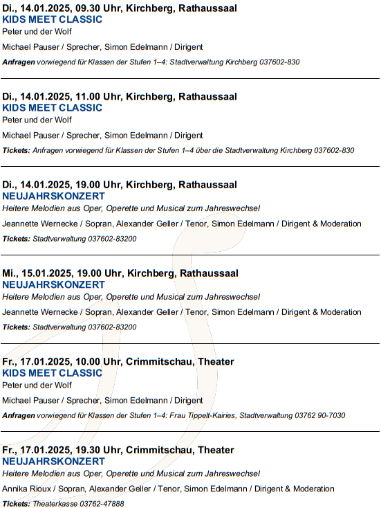 Hier die Termine ab dem 1. Januar bis Ende Januar 2025: