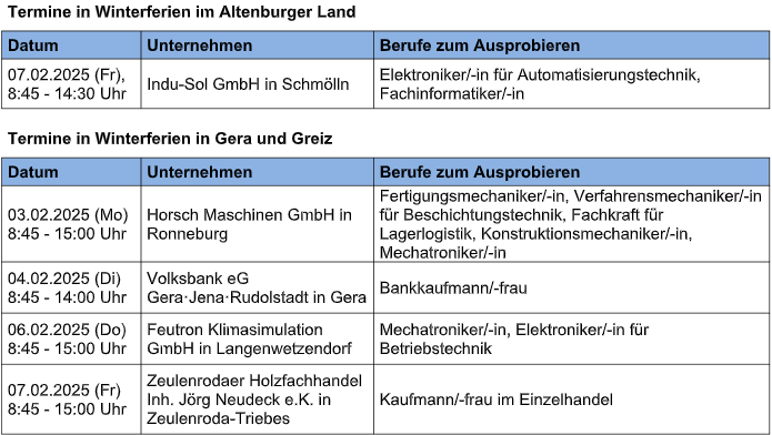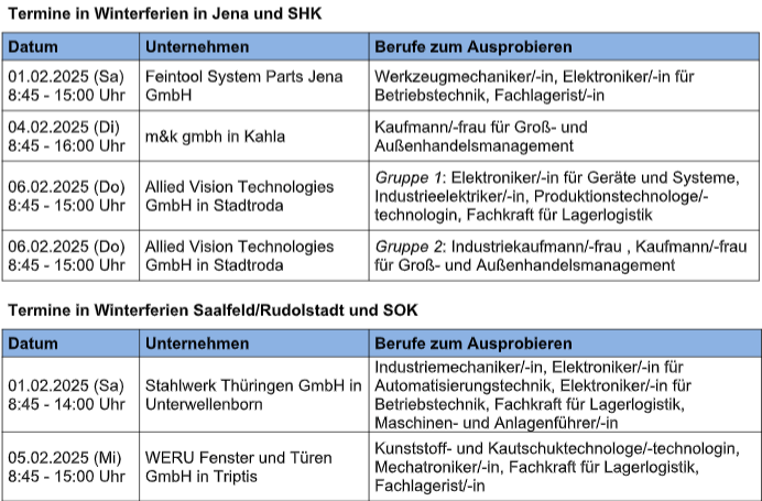 In den Winterferien öffnen zahlreiche Unternehmen in Ostthüringen wieder ihre Türen für Schülerinnen und Schüler ab Klasse 8.