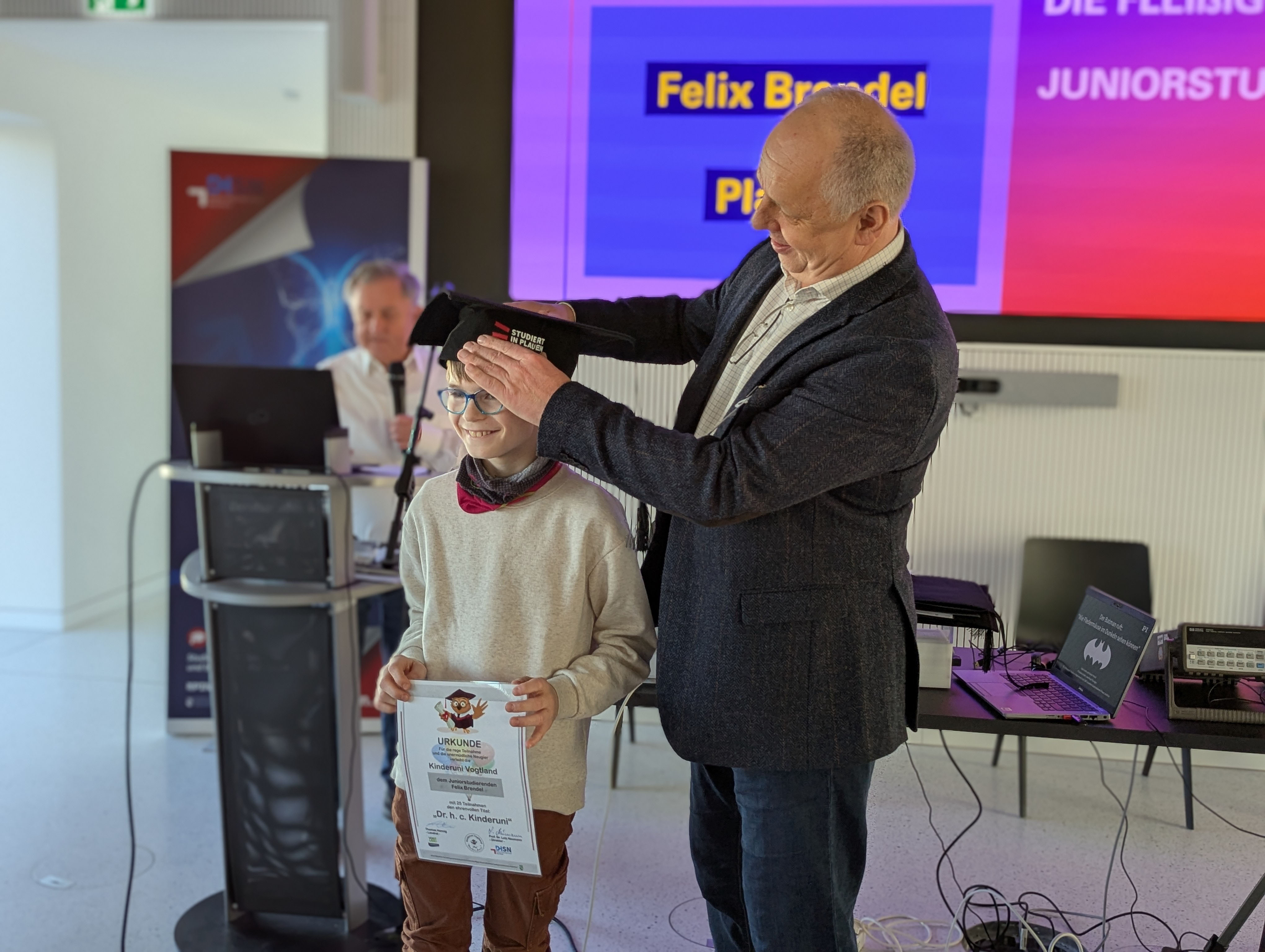Unter dem Motto „Der Batman ruft – Wie Fledermäuse im Dunkeln sehen können“ versammelten sich am vergangenen Samstag circa 170 Kinder im Audimax der Dualen Hochschule in Plauen.