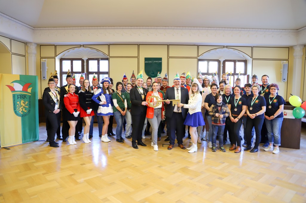 Mit dem Aschermittwoch endet traditionell die fünfte Jahreszeit – und damit war es auch für die Faschingsvereine an der Zeit, den im November eroberten Rathausschlüssel wieder zurückzugeben. Erstmals konnte die Rückgabe wieder in einem größeren Rahmen stattfinden, zu dem Bürgermeister Jörg Reichl in den Rathaussaal einlud.