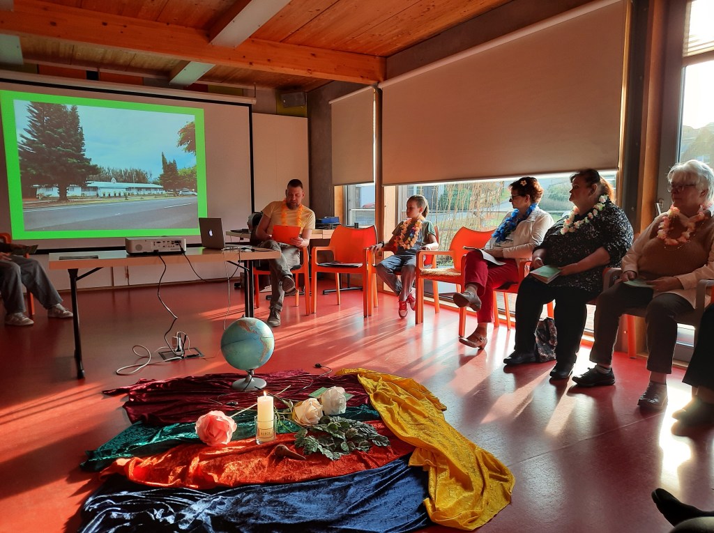 Zum diesjährigen Weltgebetstag, der größten und ältesten ökumenischen Frauenbewegung, trafen sich die Christen des Pfarrbereiches Pöllwitz-Schönbach am Sonntagnachmittag des 9. März 2025 im „SELBST-gemacht“ Arnsgrün. „Wunderbar geschaffen“ war der Titel des Weltgebetstages. Und mit „Kia orana“ – ein gutes und erfülltes Leben, grüßten mit Maori-Worten die Frauen der Cookinseln. Pfarrer Gunnar Peukert übergab zur Begrüßung allen einen Blumenkranz, der auf den Cookinseln aus dem Alltag der Menschen als Schmuck und Ausdruck ihrer Identität allgegenwärtig und nicht wegzudenken ist. Pfarrer Peukert machte die Besucher mit den 15 im Südpazifik verstreuten Inseln bekannt, die 16.500 km von Berlin mit einer Zeitverschiebung von 12 Stunden entfernt sind. Tourismus, die Zucht schwarzer Perlen und die Landwirtschaft sind wichtige Wirtschaftszweige. Zu den Schattenseiten in diesem Tropenparadies gehören der Klimawandel mit Überflutungen, der Tiefseebergbau und die verbreitete häusliche und sexualisierte Gewalt. Anhand von drei Geschichten christlicher Frauen von den Cookinseln wurden die Gottesdienstbesucher mit ihrem Leben verbunden, sahen die Welt mit ihren Augen und nahmen ihr positives Lebensgefühl auf. Die Lieder der Cookinselfrauen waren rhythmisch und gut zu singen, das Vaterunser in der Maori-Muttersprache etwas Besonderes. Die Kollekte des Gottesdienstes ging an eine von über 100 Partnerorganisationen, die Frauen und Kinder stärken.