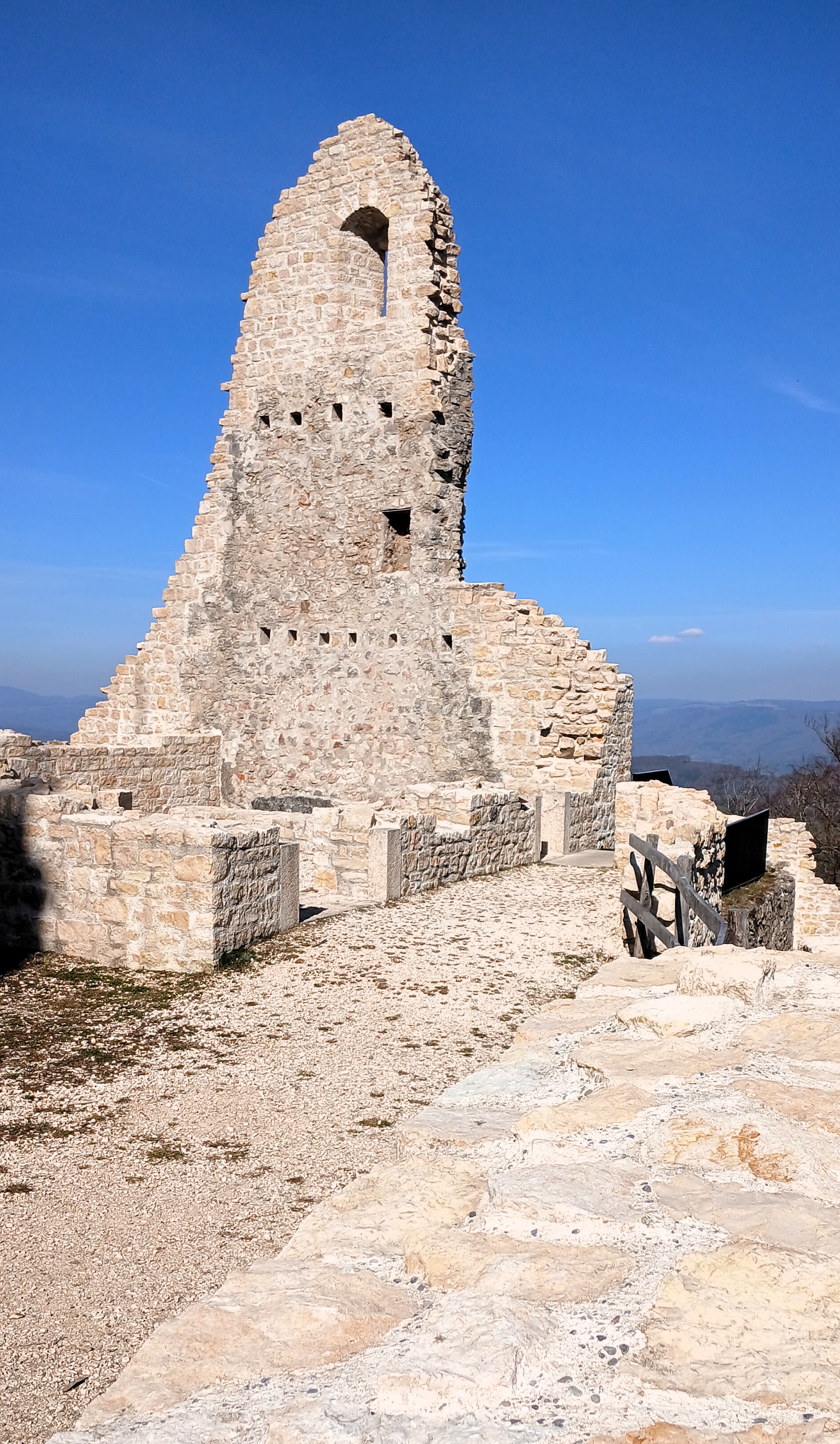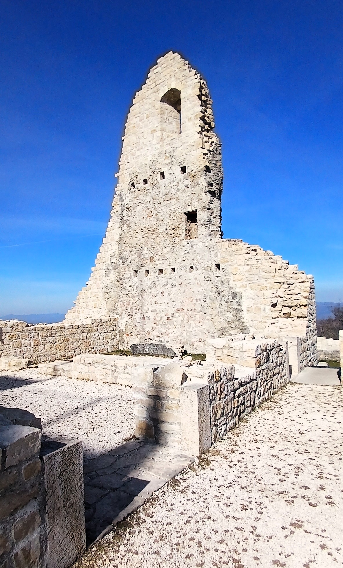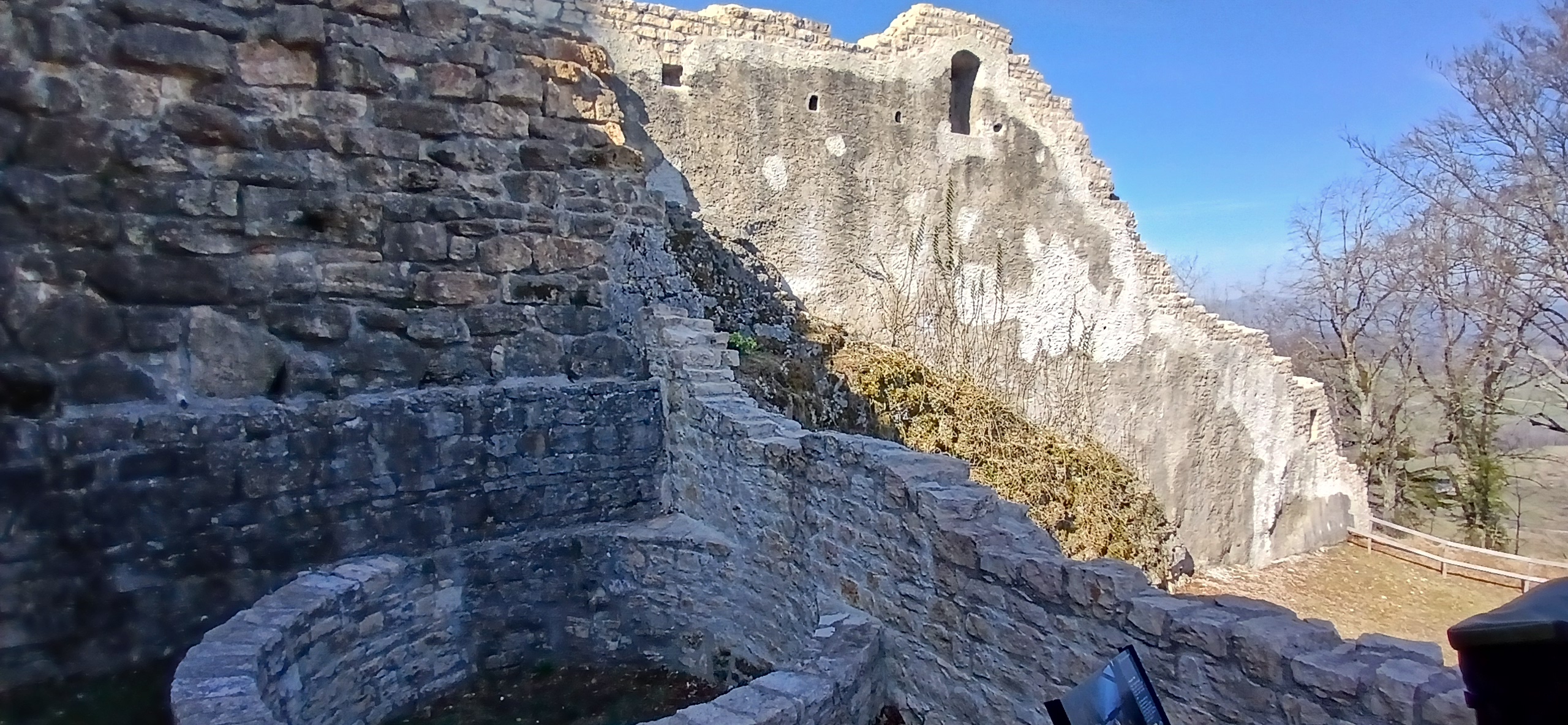 Weithin sichtbares Wahrzeichen der Burgruine ist die mächtige Schildmauer, von der aus sich eine großartige Sicht in die Landschaft bietet. Die Schildmauer kann über eine neuzeitliche Wendeltreppe, die in der Mauer integriert ist, erklommen werden.