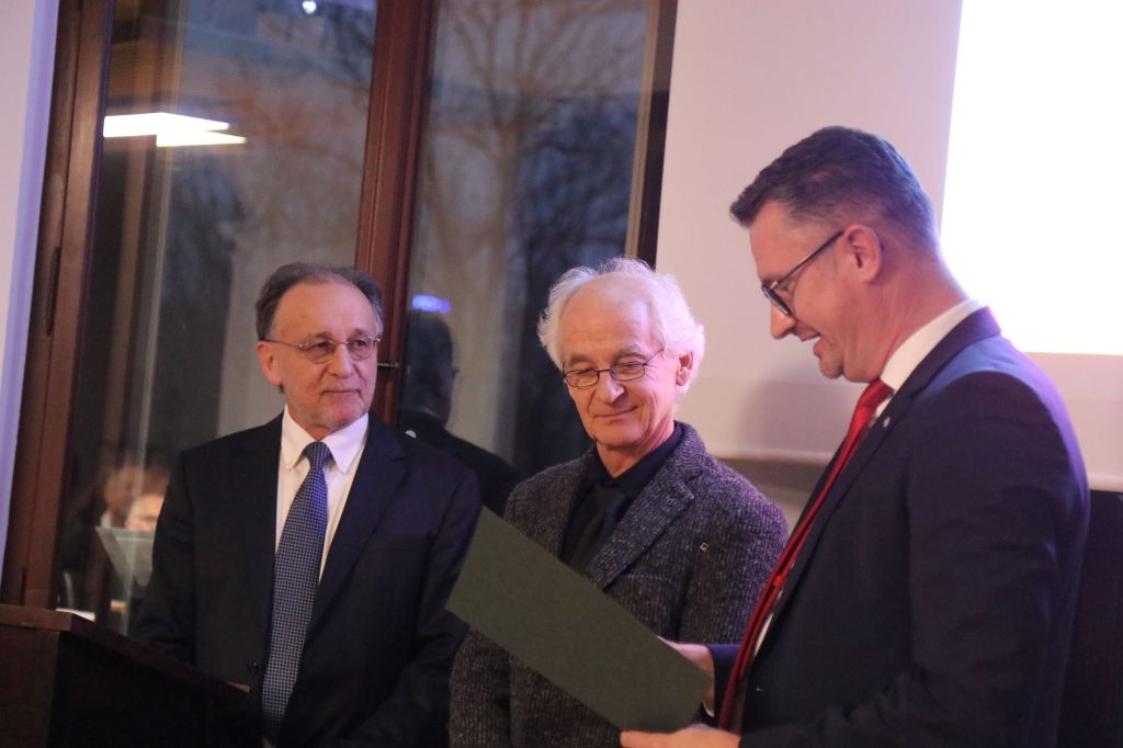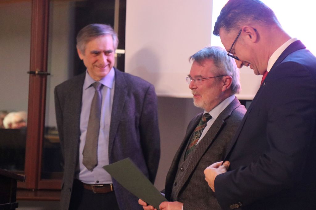 Die Laudatio übernahm Prof. Timo Mappes, der Gründungsdirektor des Deutschen Optischen Museums in Jena. „Diese Laudatio kommt von Herzen, da mich das Werk der drei wirklich auf so vielen Ebenen begeistert“, sagt er. Umso mehr konnte er sich freuen, dass er die vier Bände als Geschenk gleich in die Bibliothek seines Museums aufnehmen konnte.