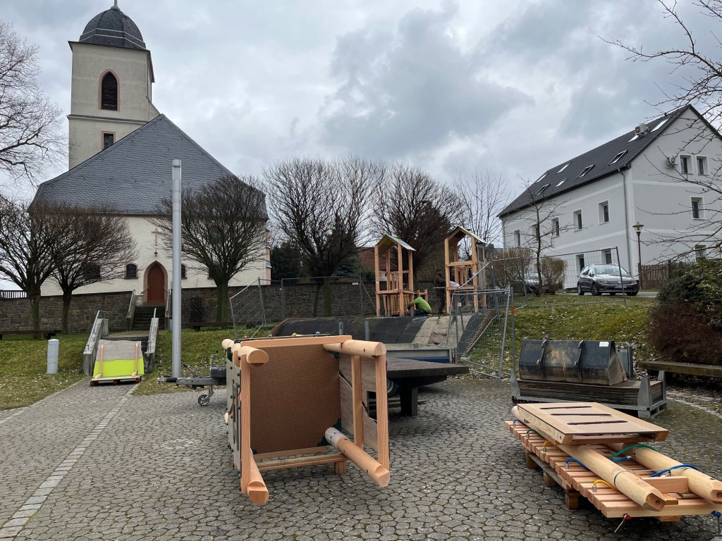 Das neue Spielgerät wurde unweit der Kirche aufgebaut. (Fotos: Lars Böhme)