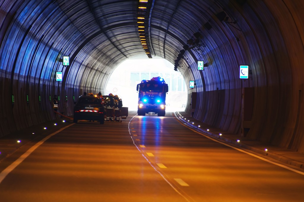 Das Horror-Szenario: – ein Bus mit Kindern verunfallt vor dem Tunneleingang | – im Tunnel steht ein Auto im Vollbrand | – in der zweiten Tunnelröhre ein Auffahrunfall mit drei Fahrzeugen zur gleichen Zeit
