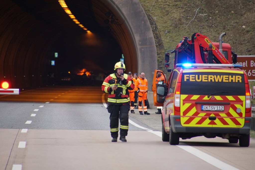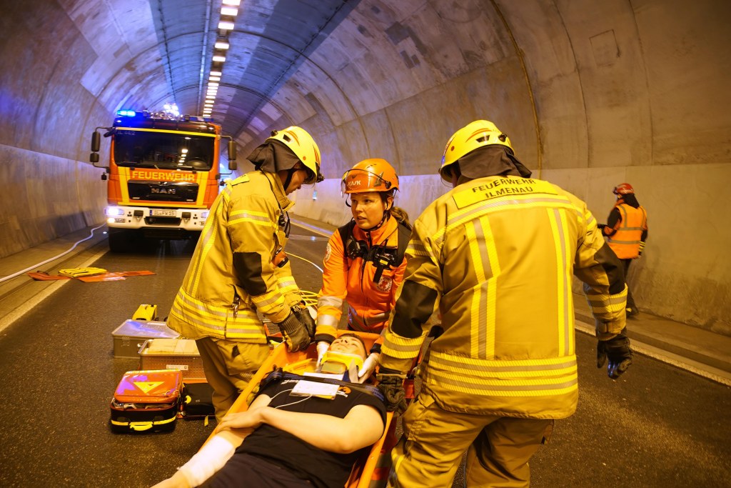 Es gibt nichts Schlimmeres, als wenn es auf der Straße kracht. Das Szenario wird noch dadurch verschlimmert, wenn der Unfall auf der Autobahn und dann noch in einem Tunnel passiert. Höhere Geschwindigkeiten, Feuer, verletzte Menschen, darunter viele Kinder… Die Notfallübung auf der A71 – rund um und im Tunnel „Behringen“ – forderte von den eintreffenden Feuerwehrleuten und Rettungskräften viel Können.