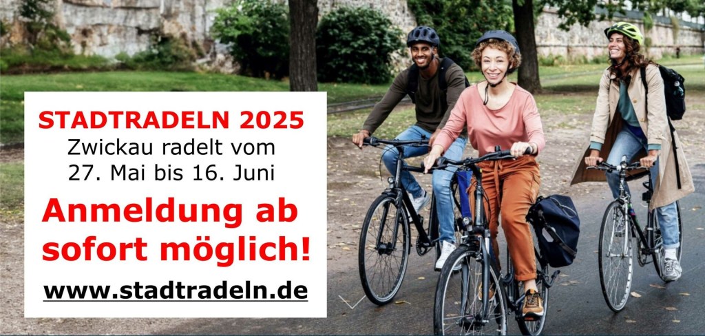 Mitmachen können alle, die in Zwickau wohnen, arbeiten, einem Verein angehören oder eine (Hoch)Schule besuchen. Zugelassen sind alle Fahrzeuge, die im Sinne der StVO als Fahrräder gelten. Ausführliche Infos zum STADTRADELN in Zwickau folgen im Mai. Allgemeine Infos rund ums STADTRADELN sind unter www.stadtradeln.de nachzulesen.