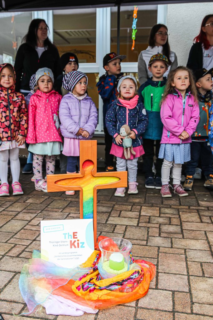 Die ganze Familie im Sozialraum erreichen – um dieses Ziel zu verfolgen, hat sich der Evangelische Kindergarten „Senfkorn“ in Rottenbach im letzten halben Jahr auf den Weg gemacht, ein Thüringer Eltern-Kind-Zentrum (kurz: ThEKiZ) zu werden. Am vergangenen Freitag feierte der Kindergarten nun die Eröffnungsfeier seiner Profilerweiterung mit einem ThEKiZ-Familienfest.
