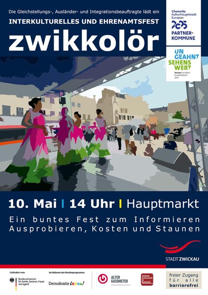 „zwikkolör“ ist eine Kooperationsveranstaltung des Büros der Gleichstellungs-, Ausländer- und Integrationsbeauftragten der Stadt Zwickau, der Integrationsberatungsstelle Zwickau und verschiedener Vereine, Initiativen und Institutionen aus Zwickau und dem Landkreis, unterstützt und gefördert durch das Programm „Demokratie leben!“