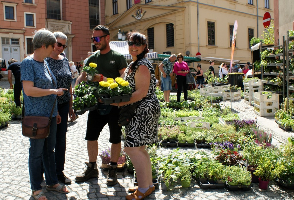 Die Händler kamen aus der Region wie aus Triebes und Saalfeld, aber auch von weiter her. So hatte Anja Kabisch aus Wengelsdorf bei Weißenfels mit ihrem Team den Bereich vor dem Bonhoeffer-Haus mit zahlreichen Blumen-, Kräuter- und Gemüsepflanzen eingedeckt. „Ich komme seit 15 Jahren jedes Jahr zum 1. Mai nach Greiz und bin auch beim Park- und Schlossfest wieder hier“, so die Händlerin, die sich über eine rege Nachfrage nach ihren Einpflanzungen freuen konnte.