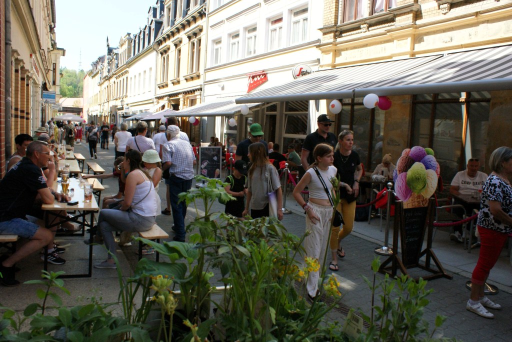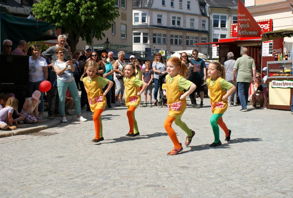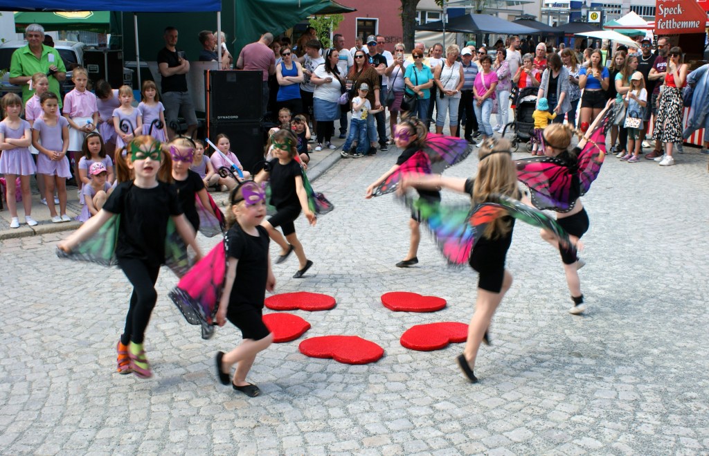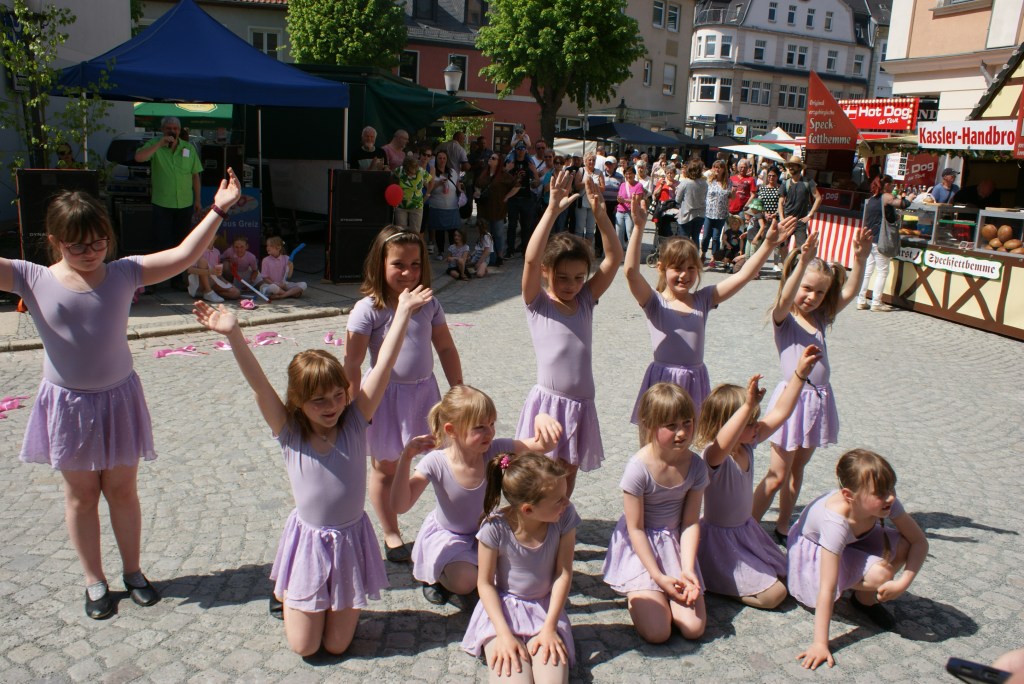 Eröffnet wurde das bunte Treiben am Vormittag mit Klängen des Greizer Fanfarenzugs. Am Nachmittag zeigten die Tanzgruppen des Tanzsportvereins Greiz zunächst am Puschkinplatz und dann im Schlossgarten Ausschnitte aus ihrem Programm. Egal, ob die Minis mit ihrem „Schmetterlingstanz“, bei dem als Jüngste eine Dreijährige mitwirkte, oder das Mutti-Ballett – alle Auftritte wurden von den begeisterten Zuschauern mit kräftigem Applaus und Zugabe-Rufen belohnt.