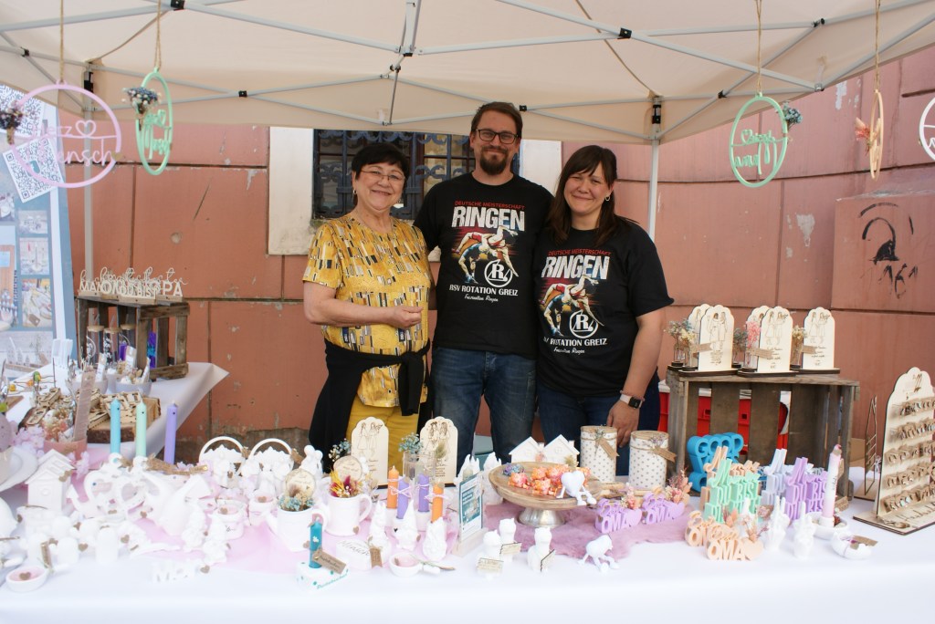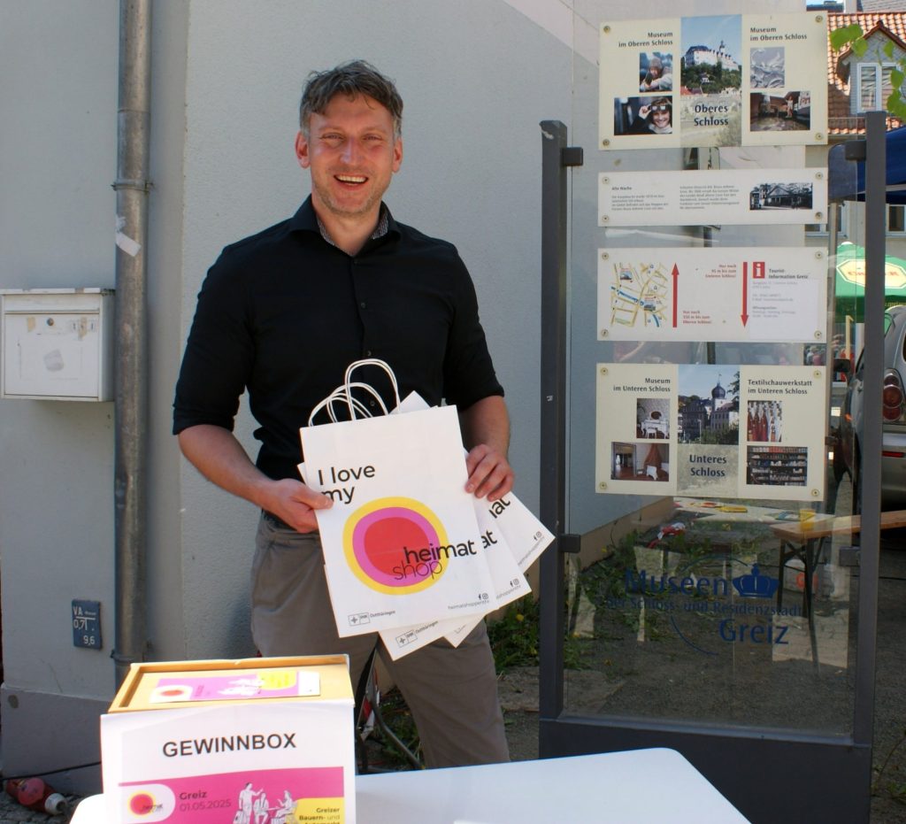 Natürlich hatten am 1. Mai auch ortsansässige Geschäfte zum Einkaufsbummel eingeladen, schließlich stand der Tag unter dem Motto „Heimat shoppen“. Diese Aktion der IHK fand zum dritten Mal in Greiz statt und legte den Fokus auf die Bedeutung des lokalen Handels. „Der Schwerpunkt ist heute auf unsere Heimat gerichtet“, so Wirtschaftsförderer Steffen Magdeburg, der an seinem Stand an der Baderei noch Teilnehmerkarten für eine ganz spezielle „Sightseeing-Tour“ mit Gewinnchancen verteilte. Bei dieser konnten in den 16 teilnehmenden Geschäften und gastronomischen Einrichtungen Sehenswürdigkeiten in und um Greiz entdeckt werden. Zu gewinnen gab es Gutscheinbündel für die teilnehmenden Geschäfte, die noch am Nachmittag des 1. Mai verlost wurden.