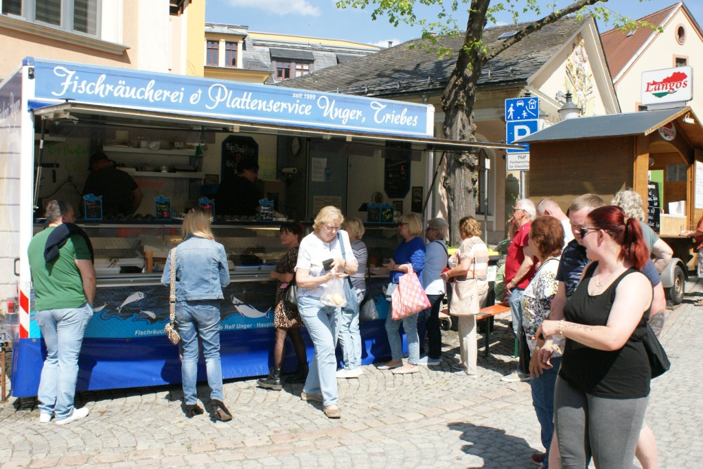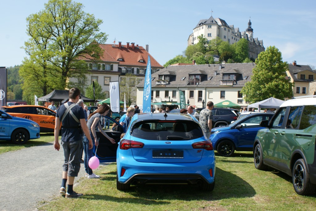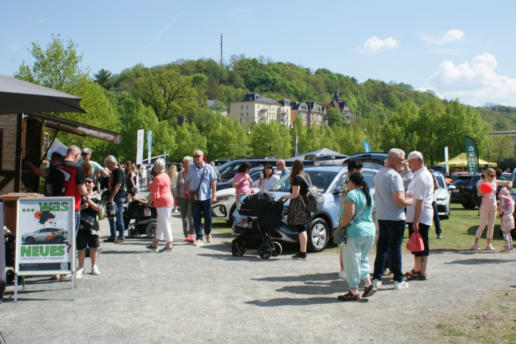 Bei strahlendem Sonnenschein präsentierten den ganzen Tag über sechs Kfz-Fachbetriebe und ein Fahrradhändler auf dem Automarkt im Schlossgarten neue Modelle und gepflegte Gebrauchte, während auf dem Kirchplatz, dem Puschkin- und Burgplatz bis in die Brückenstraße über 60 Händler und auch Vereine ihre Waren feilboten. Das Angebot umfasste sowohl heimische Produkte für Haus, Hof und Garten als auch natürlich jede Menge Süßes und Deftiges für das leibliche Wohl.