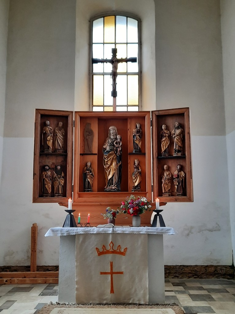 Foto: Der Flügelaltar in der Merkendorfer Kirche mit Schnitzfiguren aus dem 15. Jahrhundert ist absolut sehenswert.