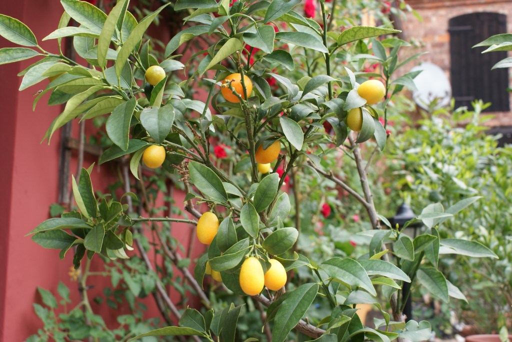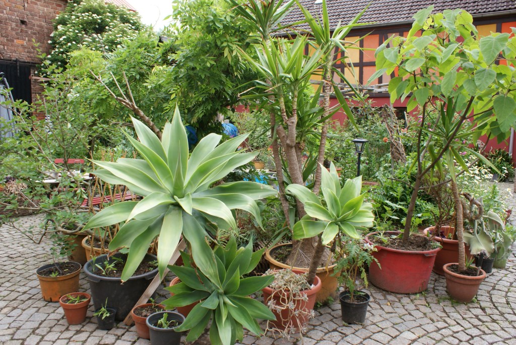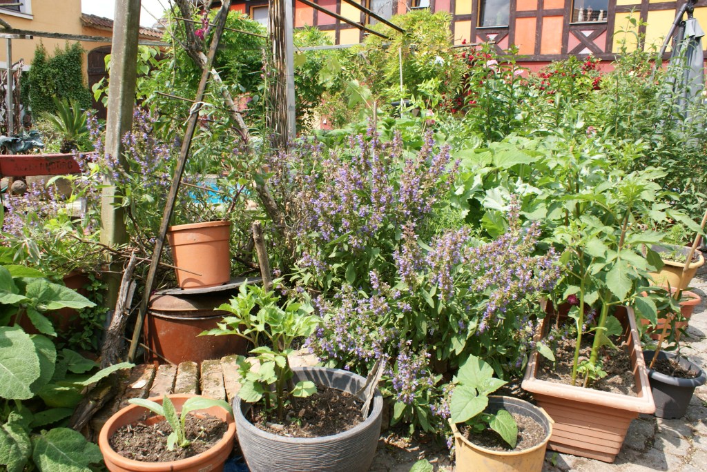 Zum bereits vierten Mal sind die Fettings bei der Open-Garden-Aktion dabei. Dabei ist das Gehöft des Ehepaares eigentlichen gar kein Garten im wortwörtlichen Sinne – der schließt sich erst hinter dem Anwesen an. Aber der Innenhof ist ein grünes und blühendes Refugium in überwältigender Pracht. Rund um einen kleinen Teich präsentiert sich den Besuchern in unzähligen Pflanzkübeln und Töpfen eine florale Vielfalt, die ihresgleichen sucht. Da blühen Rosen und Hortensien im Schatten einer großen Zimmertanne, während Orangen- und Zitronenbäumchen erste Früchte tragen.