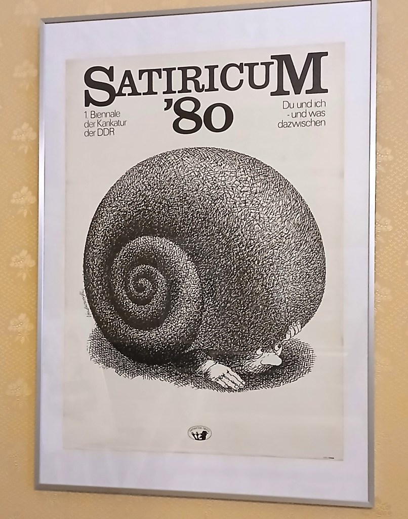 Die Jubiläumsausstellung blickt auf 50 Jahre Satiricum mit all seinen Biennalen und Triennalen zurück. Eine Besonderheit bilden die Zeichnungen aus der Wendezeit, von denen sich mehrere Motive in das kollektive Gedächtnis eingegraben haben. Ein Beispiel ist die Karl-Marx-Karikatur von Roland Beier aus dem Jahr 1989, der dem Philosophen die Worte „Tut mir leid Jungs! War halt nur so´ne Idee von mir…“ in den Mund legte.
