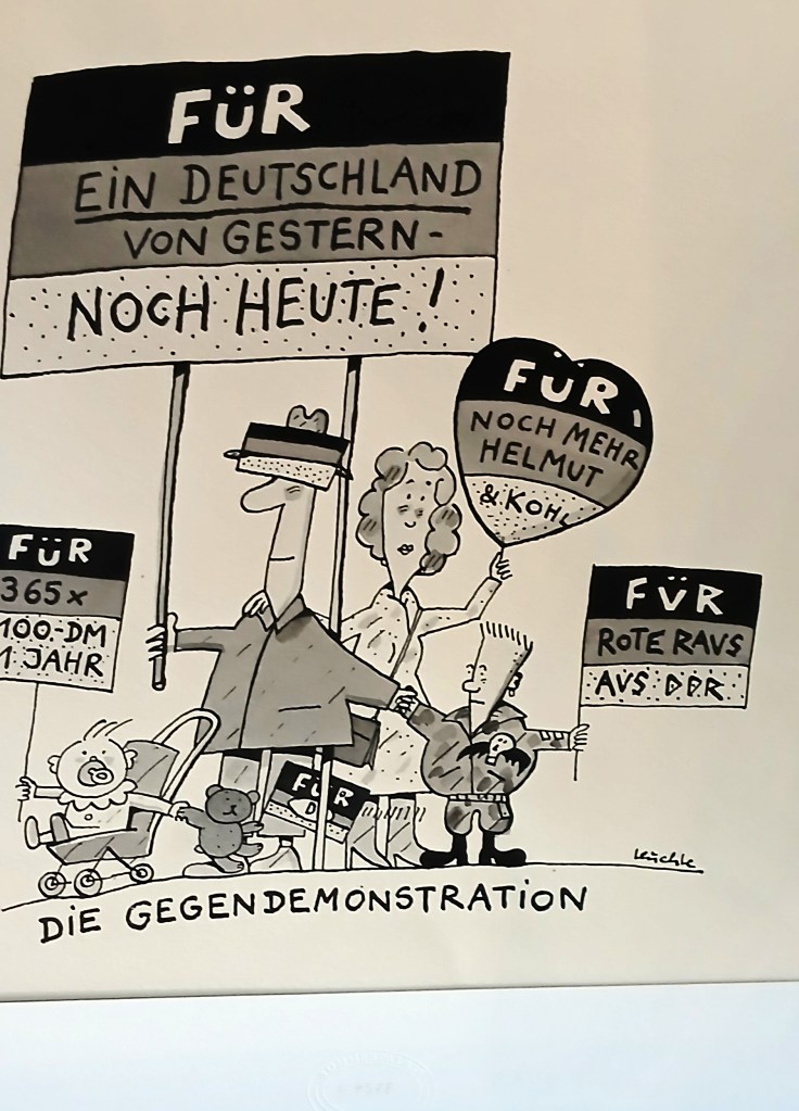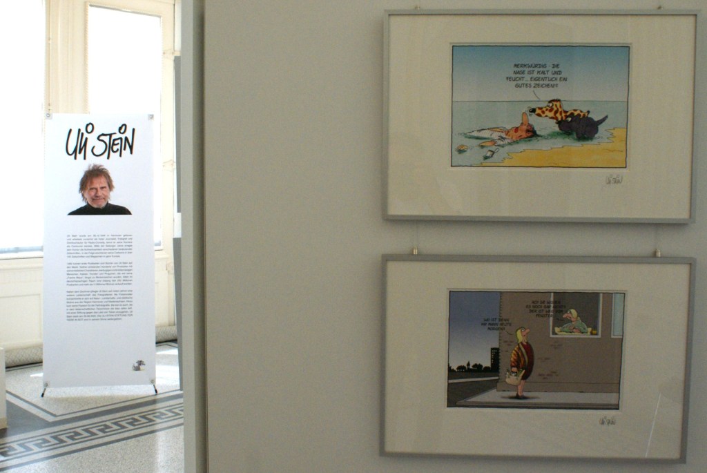 Neben den politisch ambitionierten Arbeiten vor, während und nach der Wendezeit sind im Gartensaal des Sommerschlösschens Zeichnungen von Uli Stein zu sehen, der wohl zu den populärsten deutschen Cartoonisten gehörte.