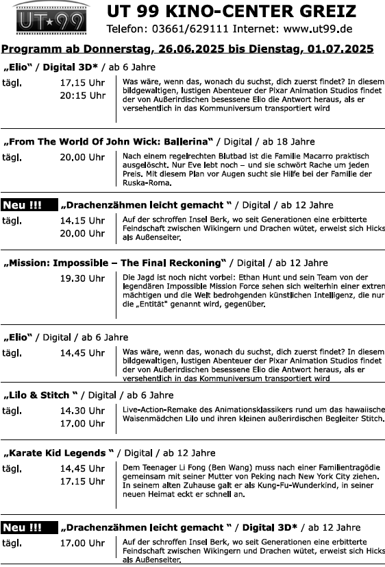 Passend zu den Ferien: „Drachenzähmen leicht gemacht“ neu im Programm. Und am kommenden Mittwoch gibt es eine spannende Vorpremiere.