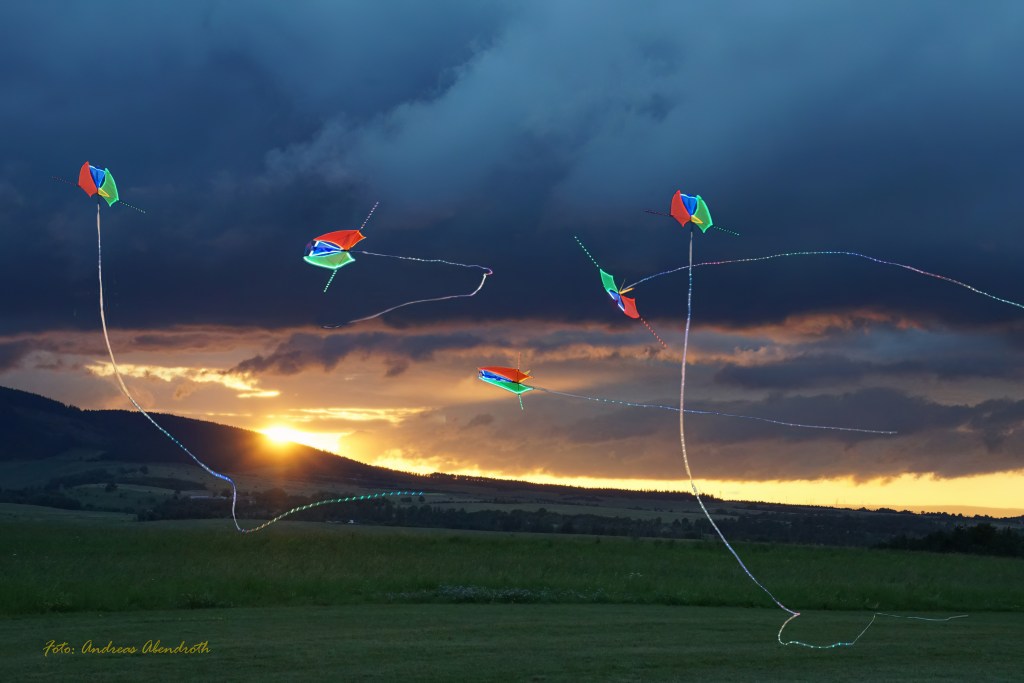Ein besonderes Highlight ist die „Blaue Stunde“: Die Thüringer Ballonfahrer lassen ihre bis zu acht Meter hohen Heißluftballone aufglühen, während bunt beleuchtete Modellflugzeuge, Leucht-Drachen und Schmetterlinge den Nachthimmel erhellen – ein unvergessliches Erlebnis für die ganze Familie.