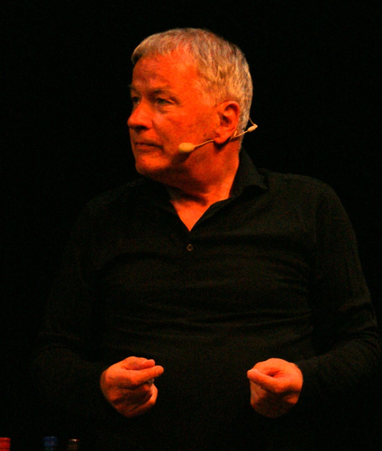 Sei’s drum, den Zuschauern ist das sicher egal gewesen. Die meisten von ihnen haben wahrscheinlich vorher sowieso noch nie etwas von Tom Waits gehört und ein Großteil des aus nicht wenigen Damen mittleren Alters bestehenden Publikums war eh wegen Thomas Rühmann gekommen. Der wurde allerdings von zwei ausgesprochen versierten Musikern begleitet – von Reentko Dirks an den Gitarren und Clemens Christian Poetzsch an den Tasteninstrumenten. Und deren kongeniales Spiel macht auch für den reinen Musikfan den Besuch des StoryTellerTrios allemal empfehlenswert.