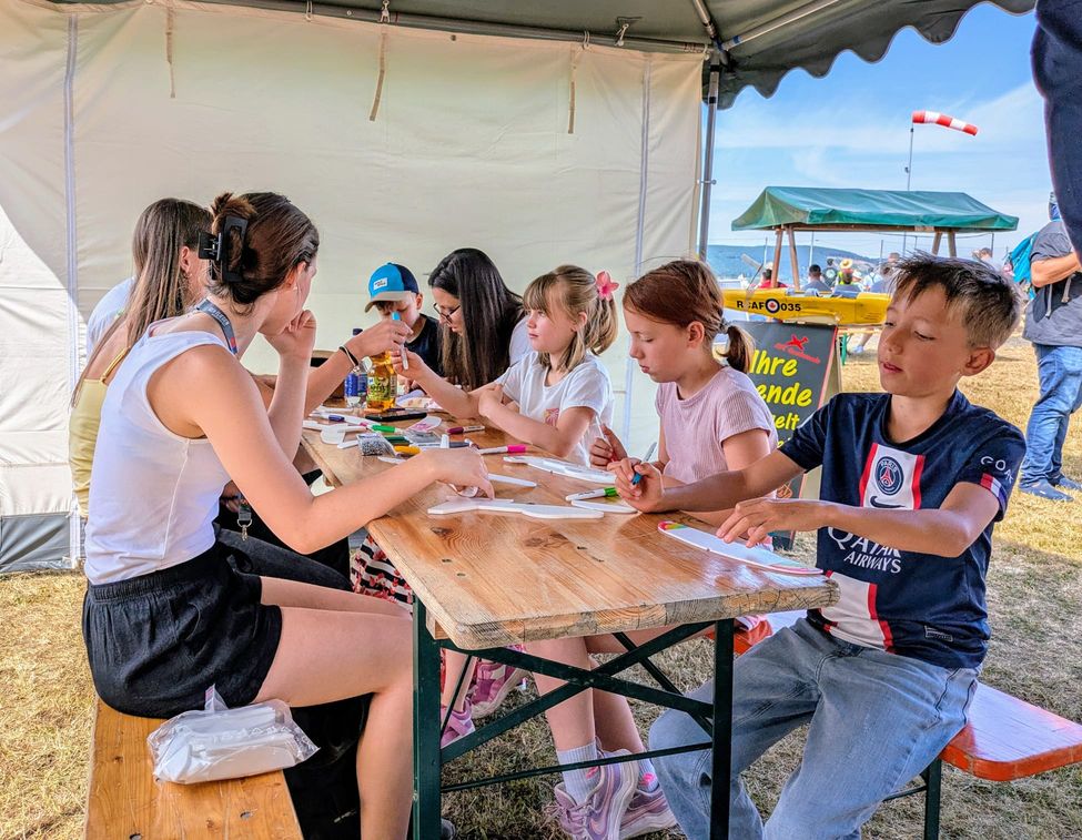Dazu gab es eine Bastelstraße für Wurfgleiter mit anschließendem Wettbewerb für die kleinen Gäste und natürlich hoben auch die Bonbonflieger – gesteuert von Günter Hildebrandt und Florian Urland – für die Kids ab. Dicht umlagert war der original Ultraleicht-Flugsimulator des Aeroclub Arnstadt. Nach absolviertem Flug gab es sogar noch ein Zertifikat für die Gäste.