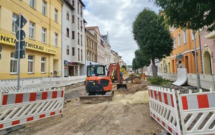 am 08.07.2025: Beginn neuer Bauabschnitt zwischen Fahrradweg und Arbeitsamt Fahrspur in Fahrtrichtung Crimmitschau/Gewerbegebiet Korpnikusstraße
