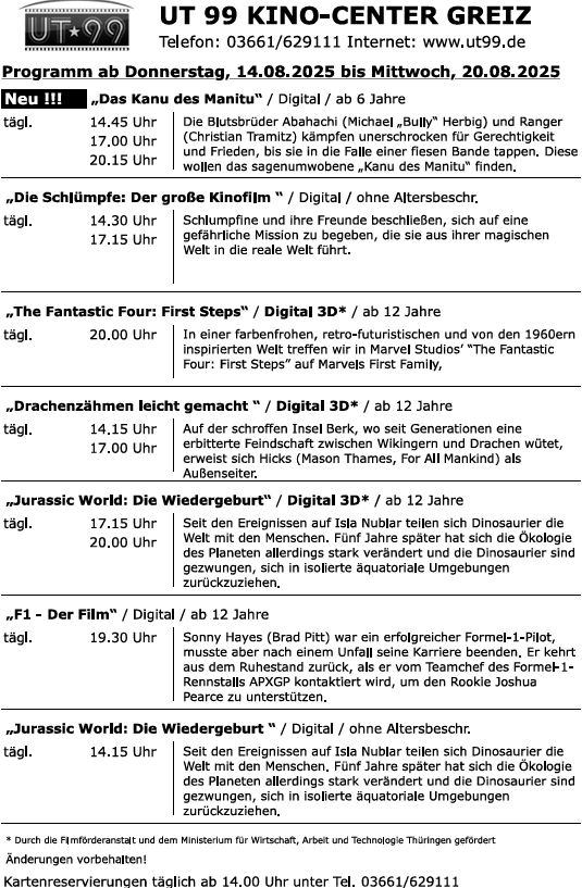 Warum bei den hochsommerlichen Temperaturen nicht mal ins wohl klimatisierte Kino? Hier der Programmüberblick über alle Filme ab 14. August: