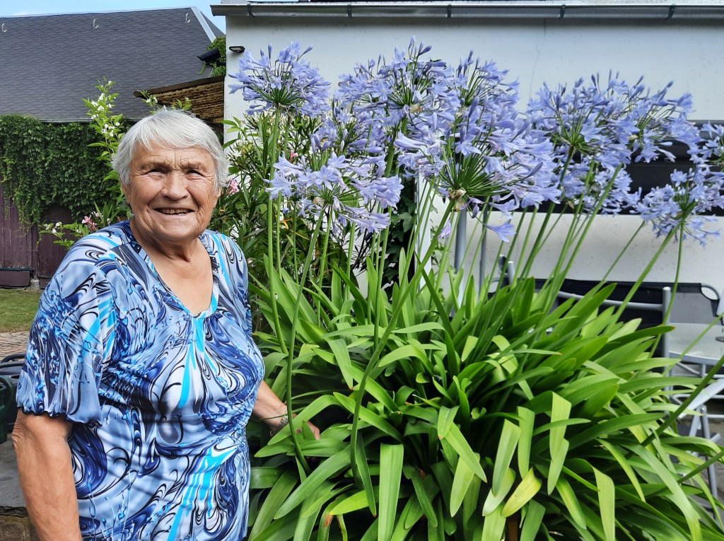 Die Schmucklilien aus der Familie der Amaryllisgewächse und ursprünglich aus dem südlichen Afrika stammend lieben Licht und Wärme. Und diesen sonnigen und warmen Standort finden sie in Erikas Garten in Bernsgrün vor. Überwintern müssen sie allerdings an einem frostfreien hellen Ort. Beim Transport der Kübel dorthin hilft ihr dabei tatkräftig ihr Sohn Jochen. Erika Gräbner erfreut sich nicht allein an der Blütenpracht. Auch Bienen und Schmetterlinge sind an den Blüten zu beobachten.