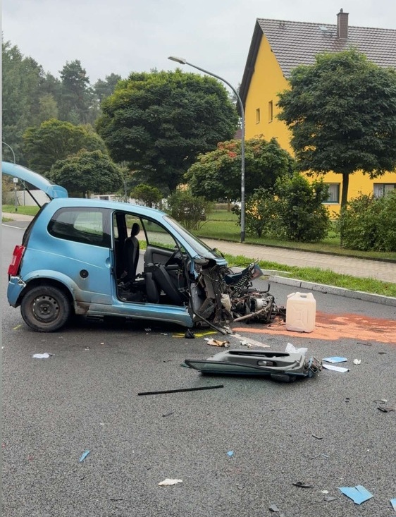 Während der 72-jährige Fahrer des Golf unverletzt blieb, erlitt die 19-jährige Beifahrerin im 45 km/h-Auto schwere Verletzungen und musste in eine Jenaer Klinik gebracht werden. Beide Fahreuge mussten mit Totalschaden abgeschleppt werden.