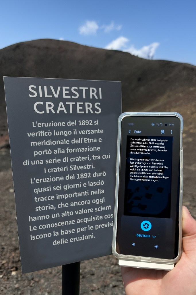 Auf meiner Expeditions-Tour durch die Vulkanlandschaften und deren geologische Aufschlussgebiete Italiens hatte ich den Vasco Translator V4 im Gepäck. Er ist so groß wie ein Smartphone, wiegt nur 134 Gramm, funktioniert ohne App, ohne WLAN, ohne Vertrag und ohne Abo. Die durch den Hersteller eingebaute SIM-Karte soll lebenslang kostenloses Internet für Übersetzungen liefern. Und… Ich habe mehrere Möglichkeiten von Übersetzungen: als Text-Übersetzer, Foto-Übersetzer und Sprach-Übersetzer.